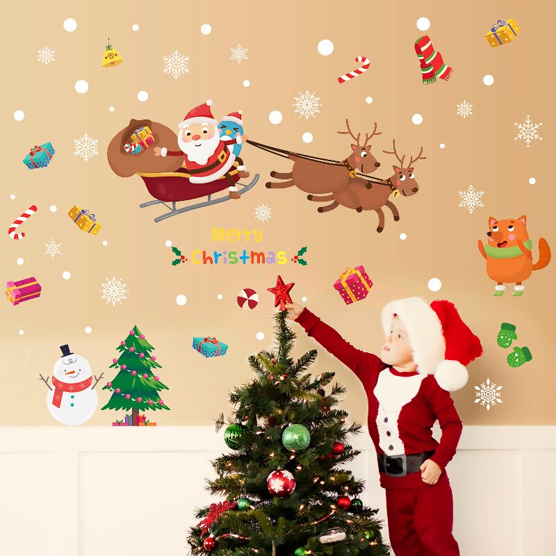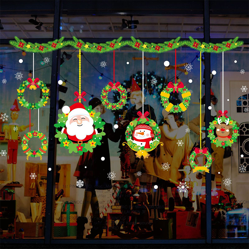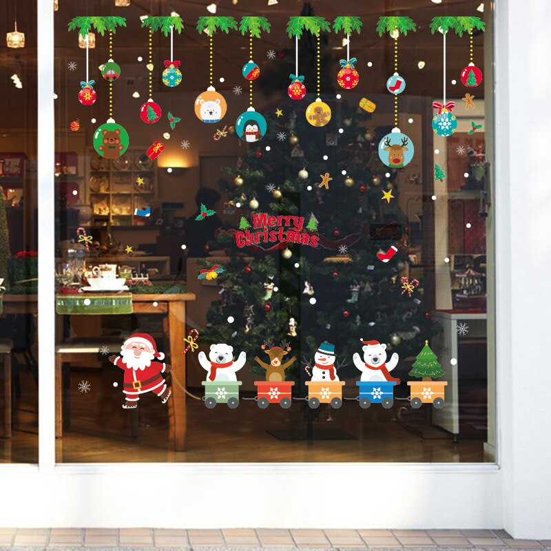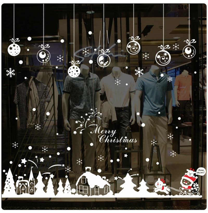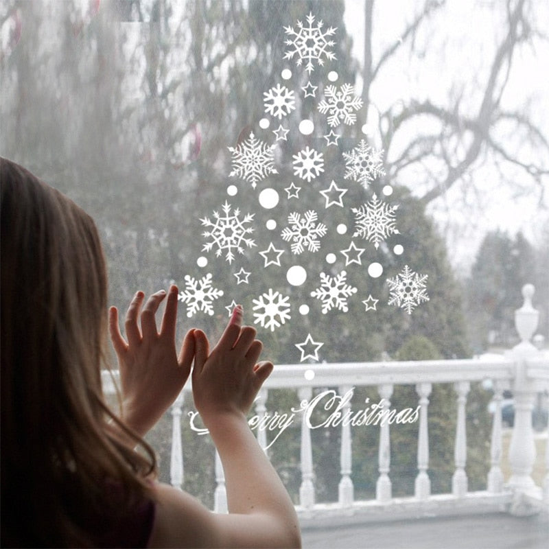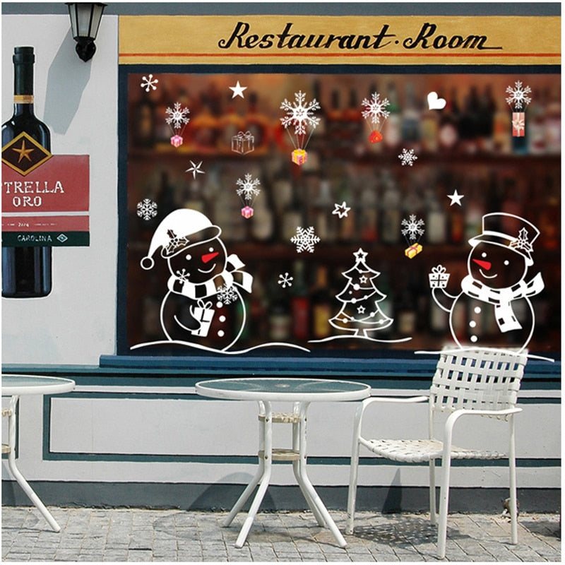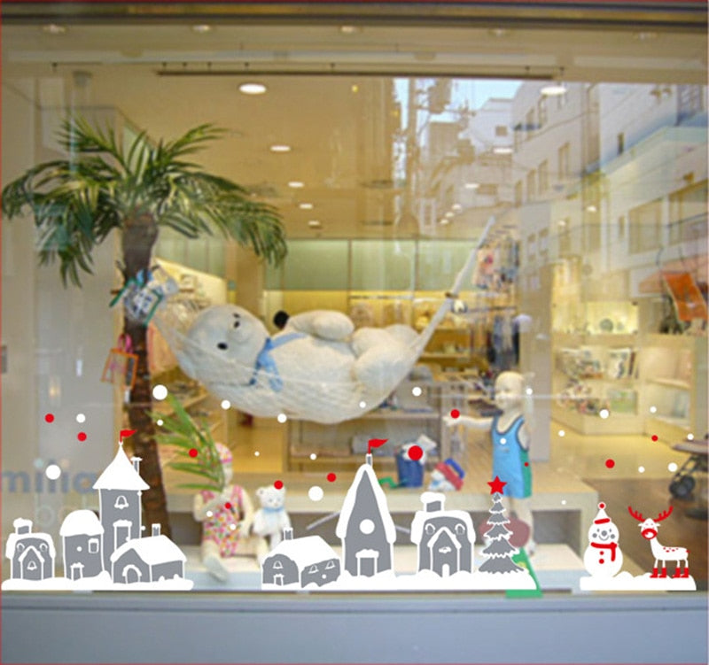 New Year Merry Christmas Decorations for Home Snowflake Hut Wall Sticker Shop Window Glass Decoration PVC Sticker Navidad
