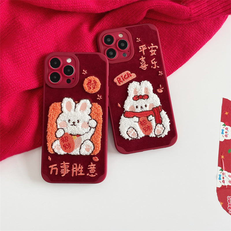 The package includes 1 x phone case, allowing you to instantly transform the look of your iPhone and showcase your unique style. Whether you're looking for a special gift for a loved one or simply want to treat yourself, the New Year Red Embroidery Charm Rabbit Phone Case is a must-have accessory that combines fashion and functionality. Upgrade your phone protection with this adorable and auspicious phone case today!