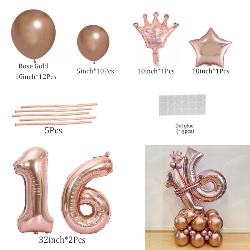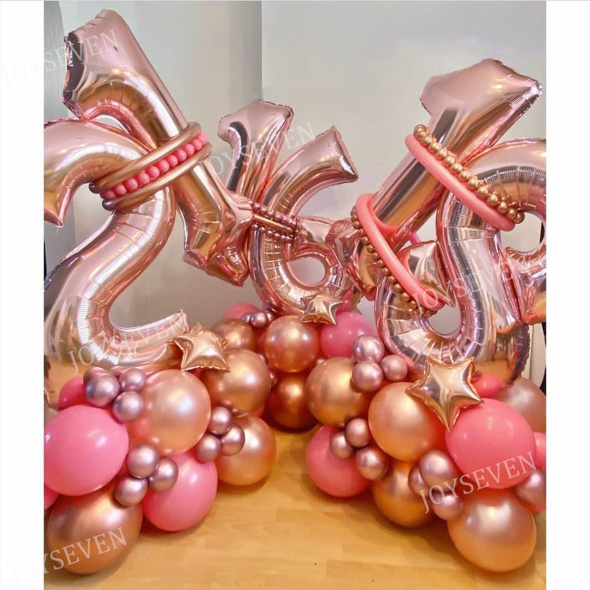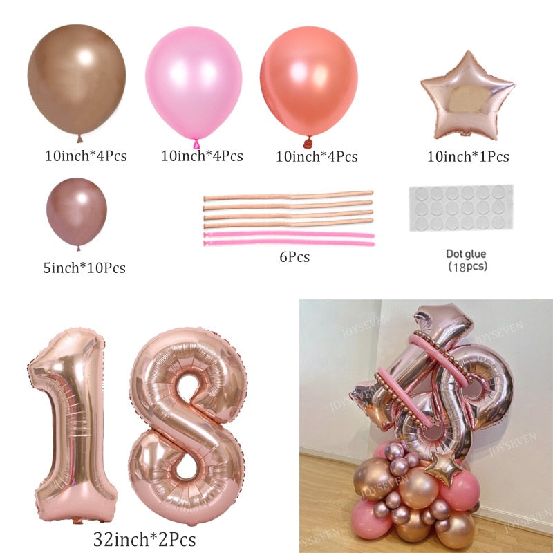 32Pcs Rose Gold Number Foil Balloons Set Metallic Latex Balloons For Happy Birthday 16 18 25 30 40 50 Birthday Party Decorations