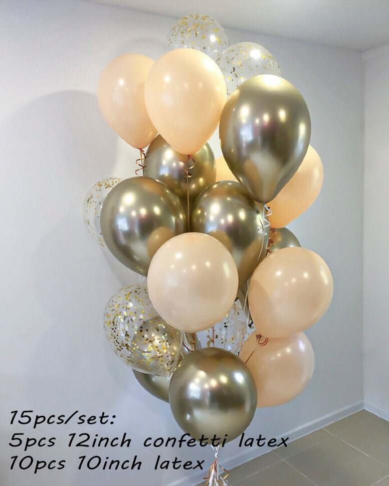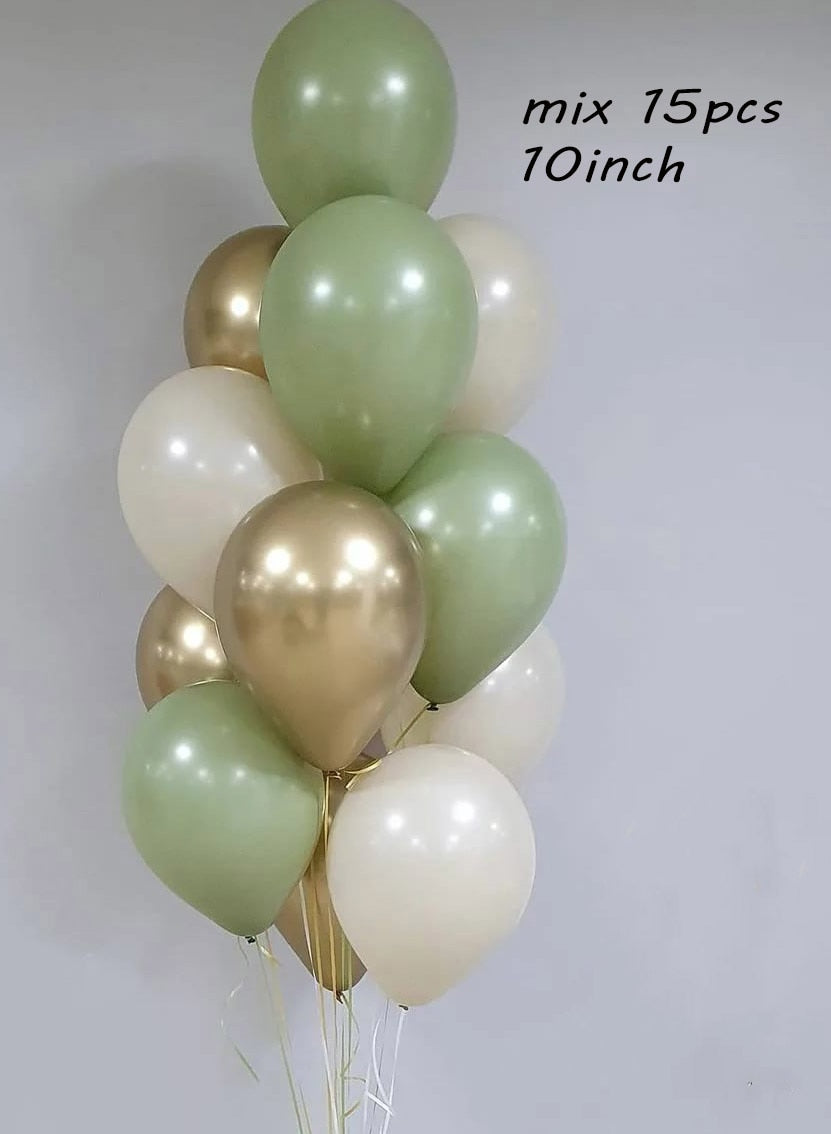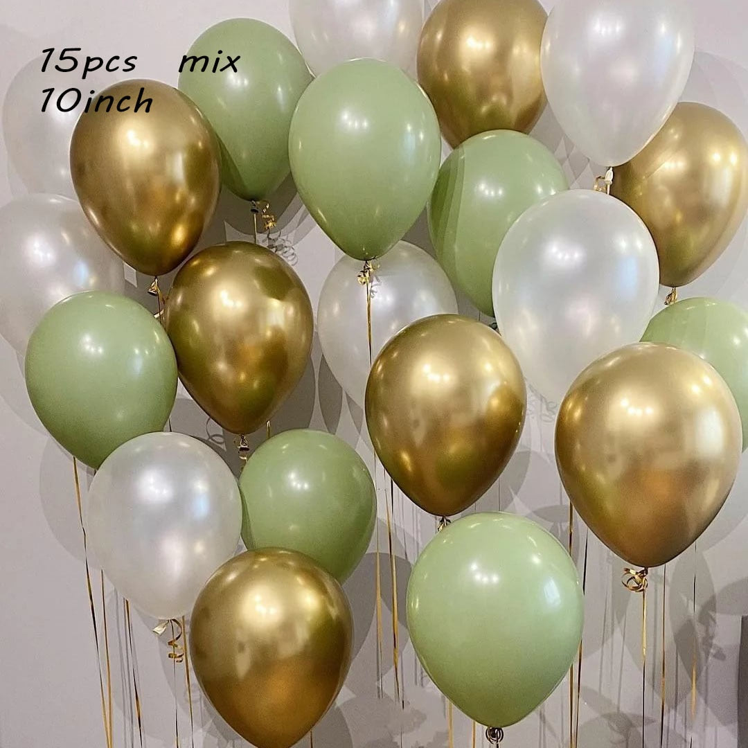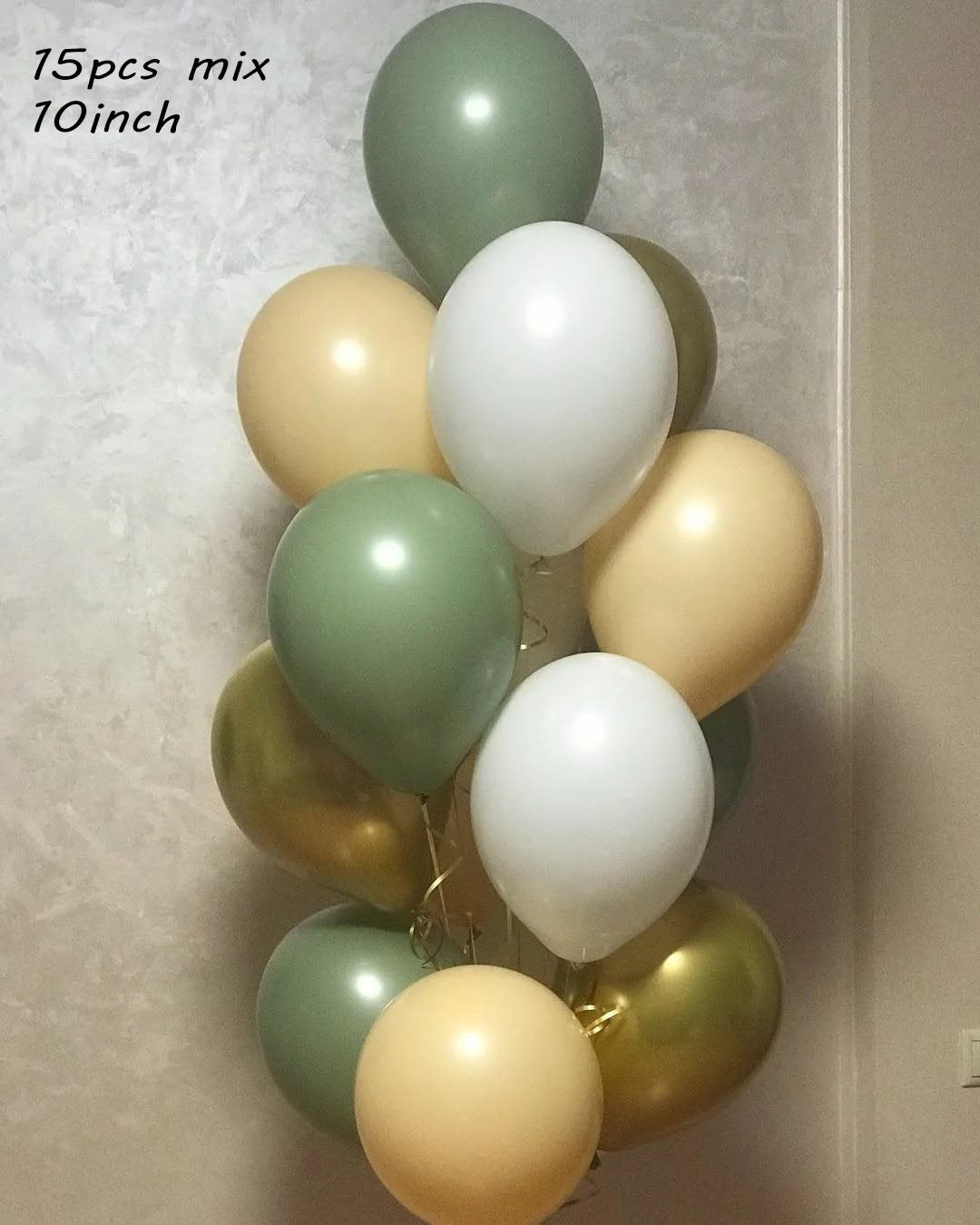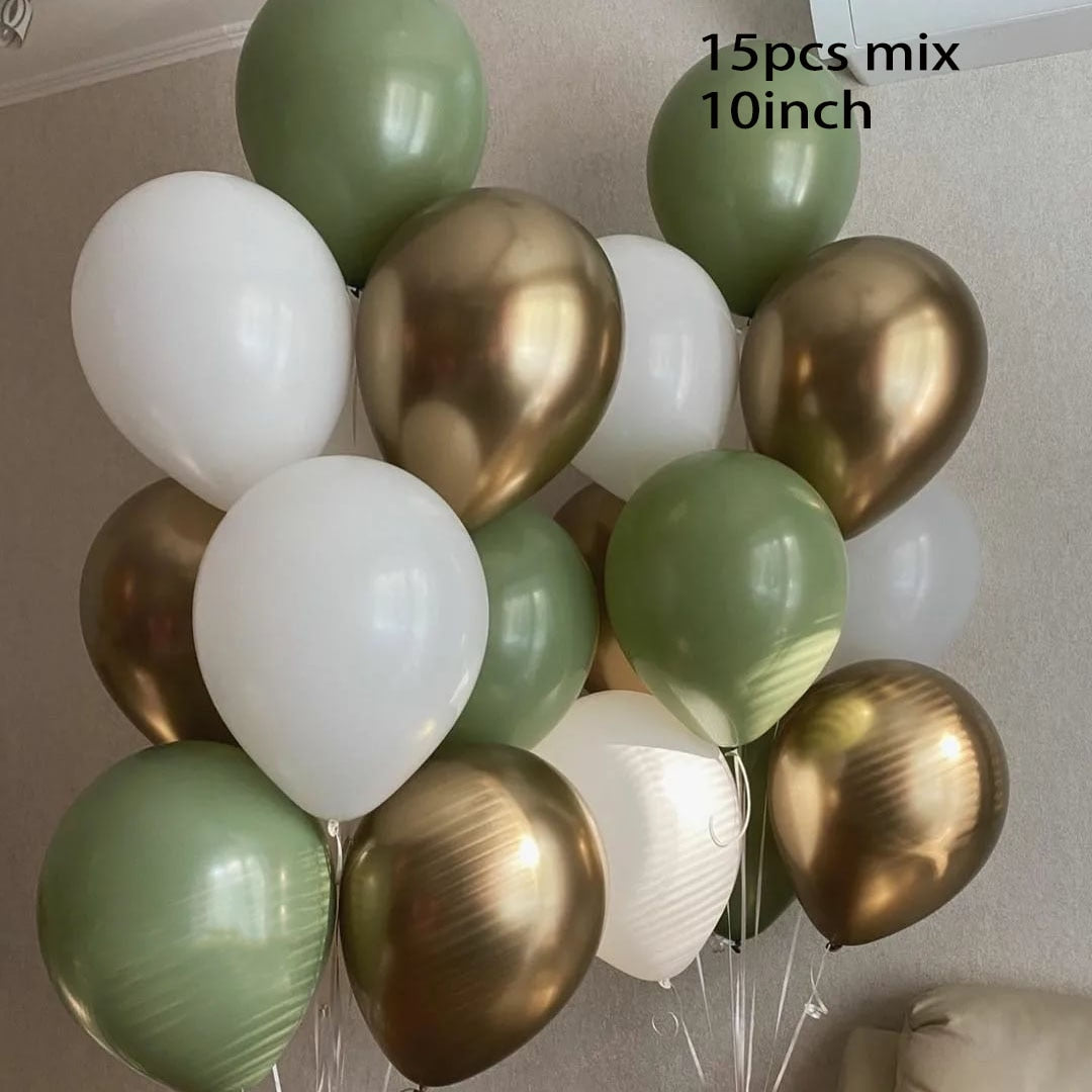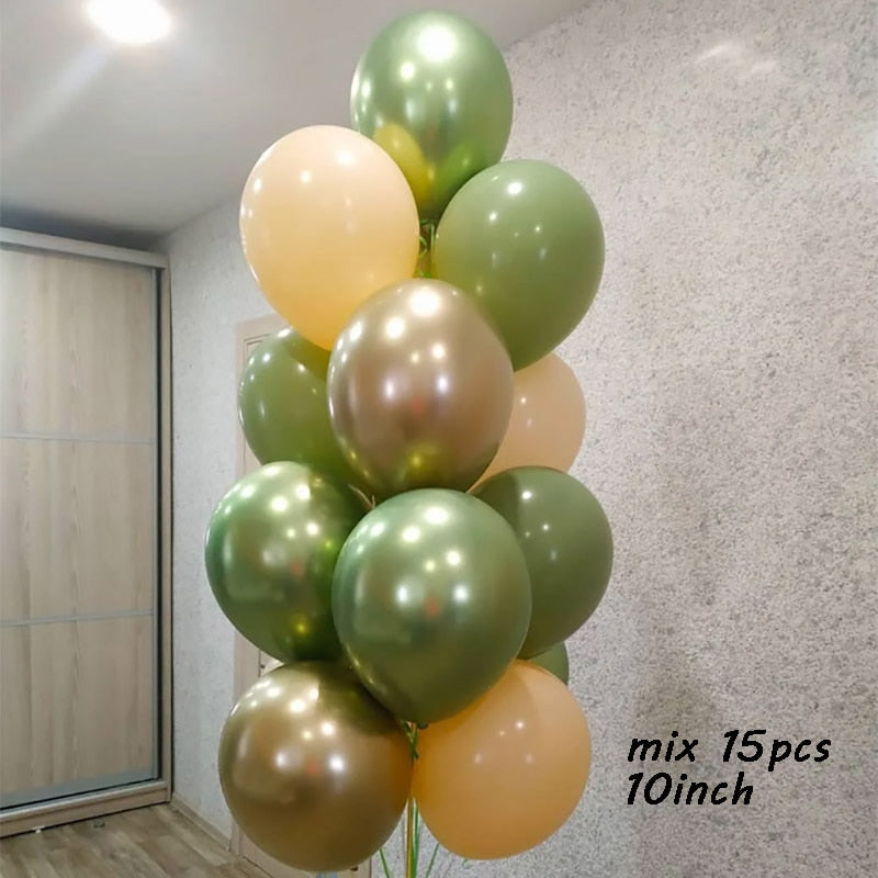 15pcs Retro Olive Green Chrome Gold Latex Balloons Birthday Party Decor Baby Shower Air Ballon Wedding Celebration Supplies Glob