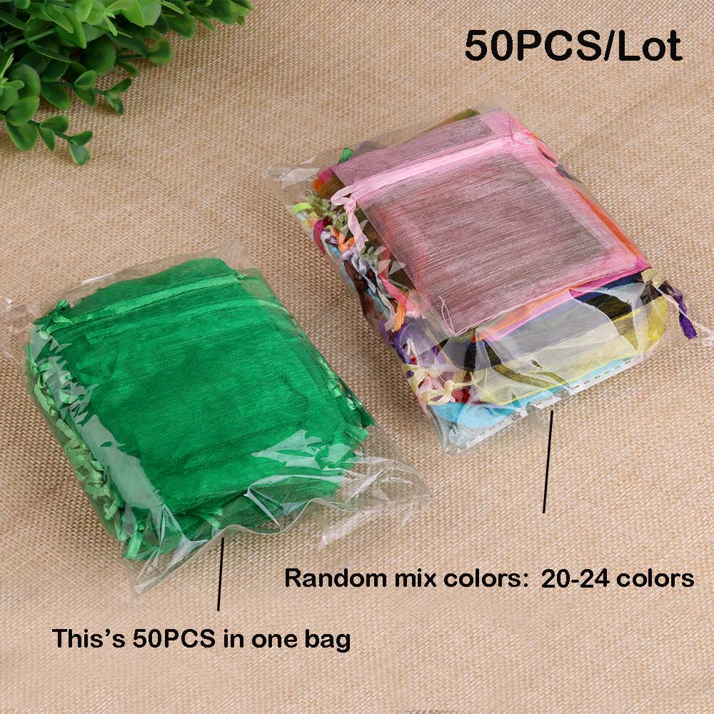 50pcs/lot Organza Gift Bag For Jewelry 24 Colors Drawstring Pouches For Wedding Christmas Candy Gift Bags Jewelry Packing