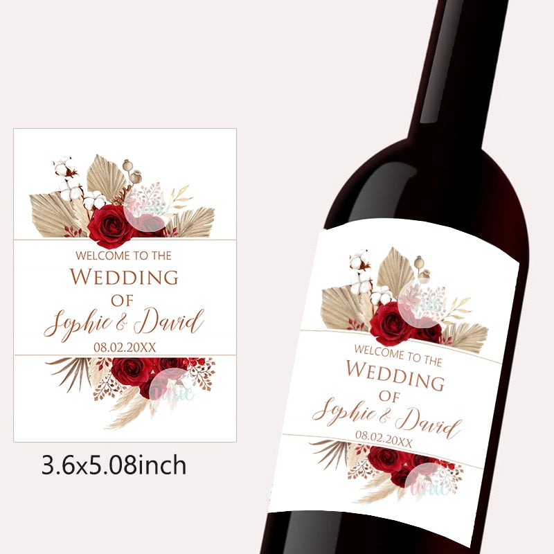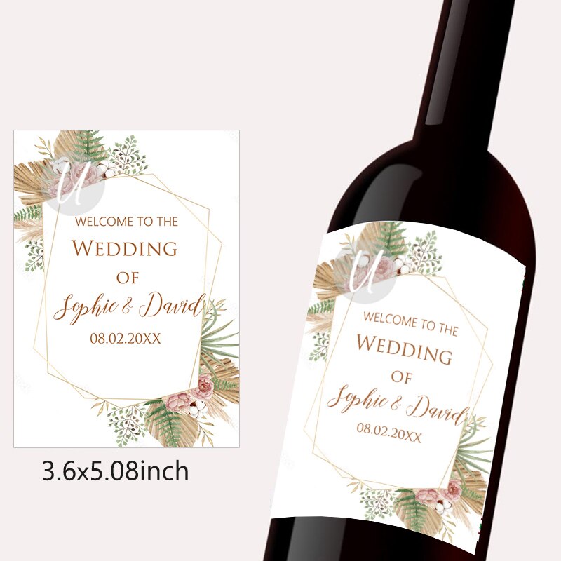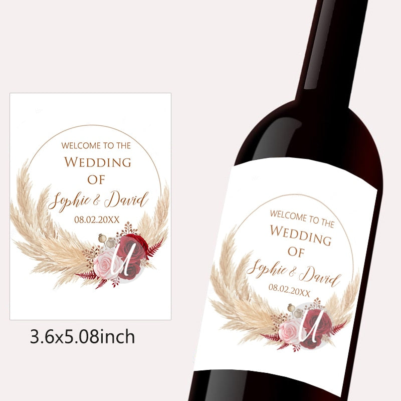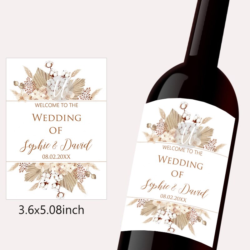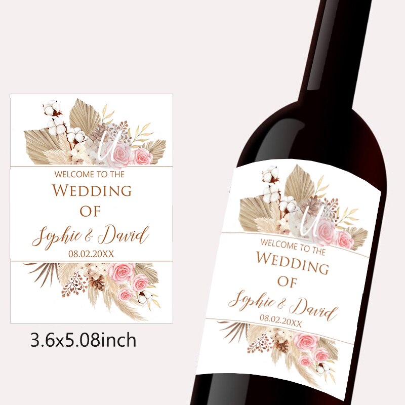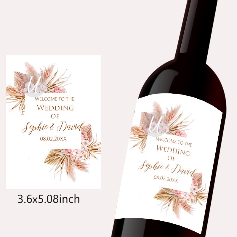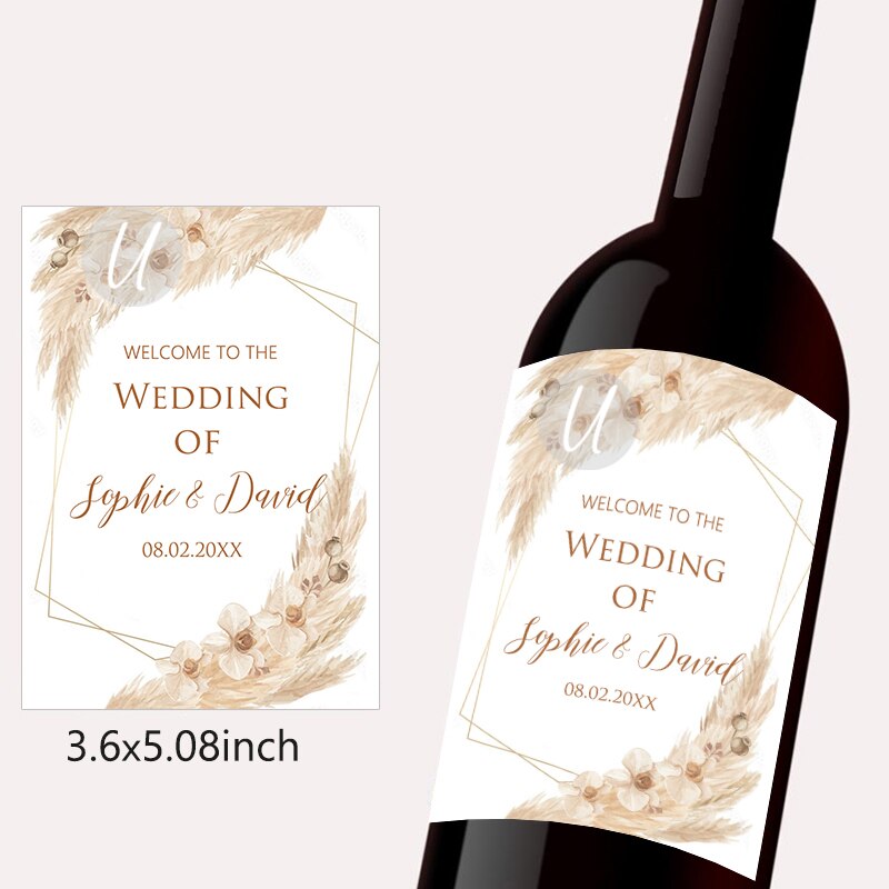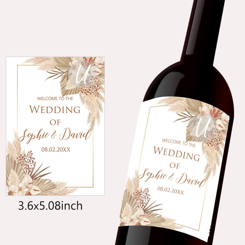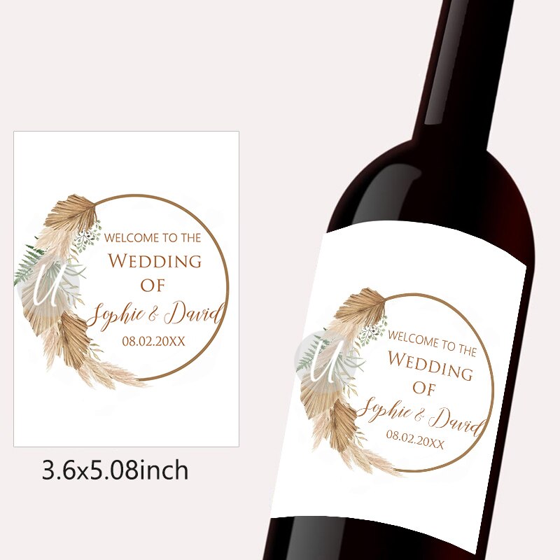 Pampas Grass Design Wine Bottle Wraps Sticker Customize Labels Any Text Occasion Personalise Baptism Birthday Baby Shower Decor