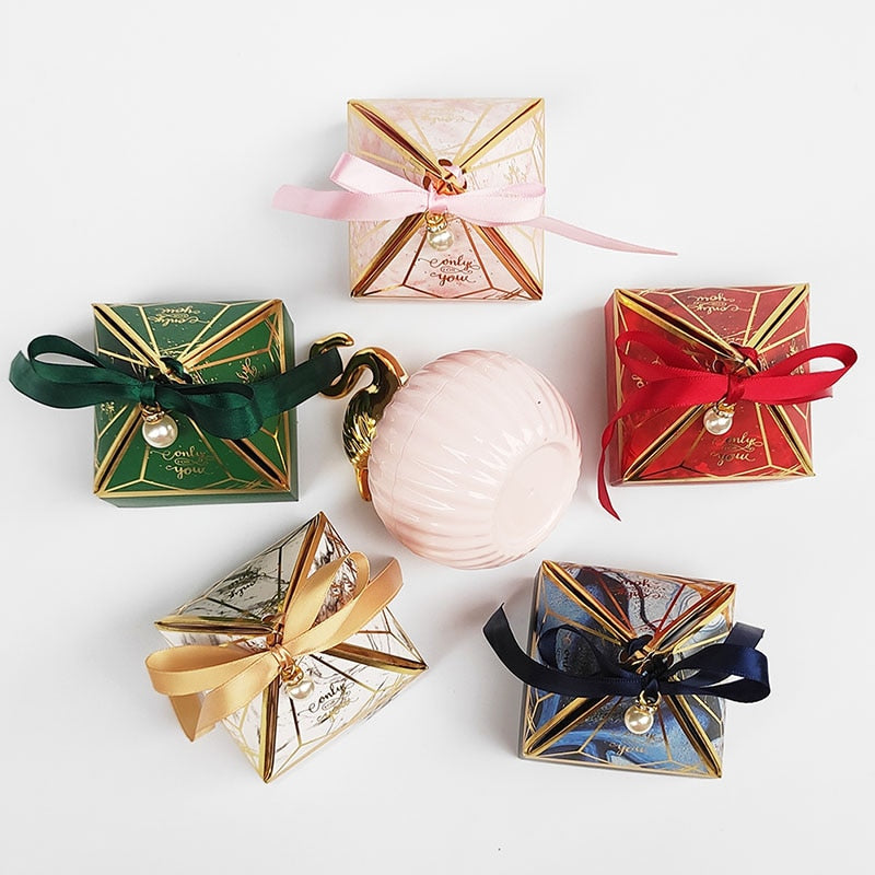 Paper Gift Box with Ribbon Bead Wedding Favor