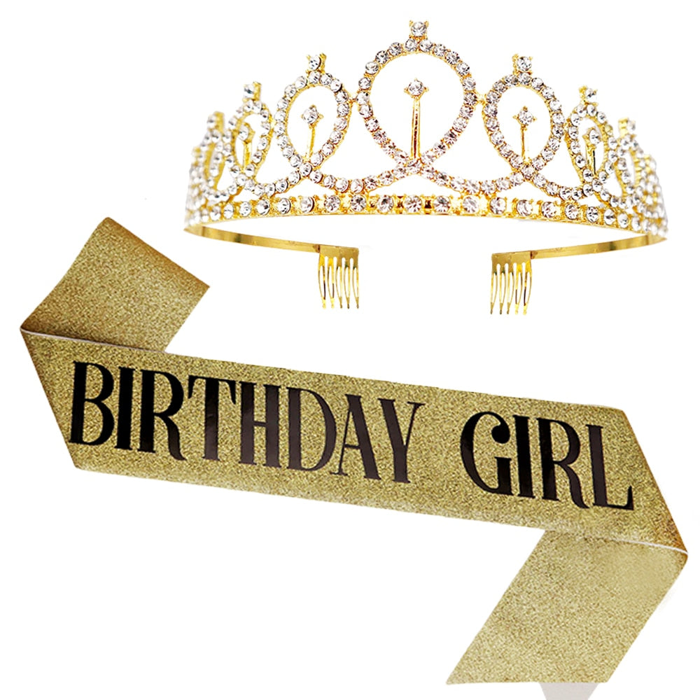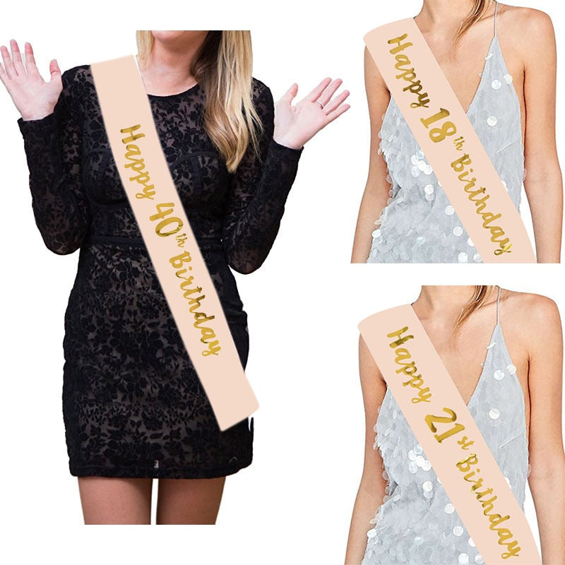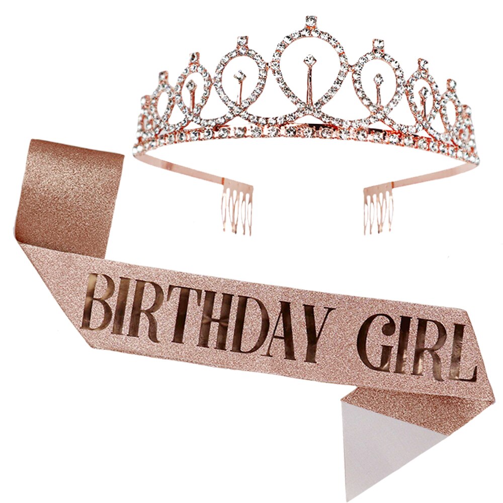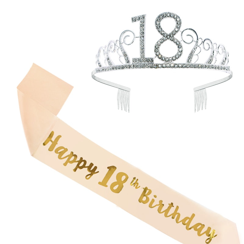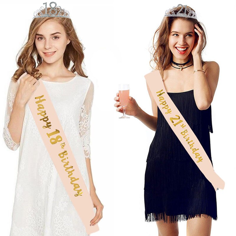 Birthday Party Decoration 18 21 30 40 50 Rose Gold Satin Sash Crystal Crown Tiara Happy Birthday Anniversary Party Supplies