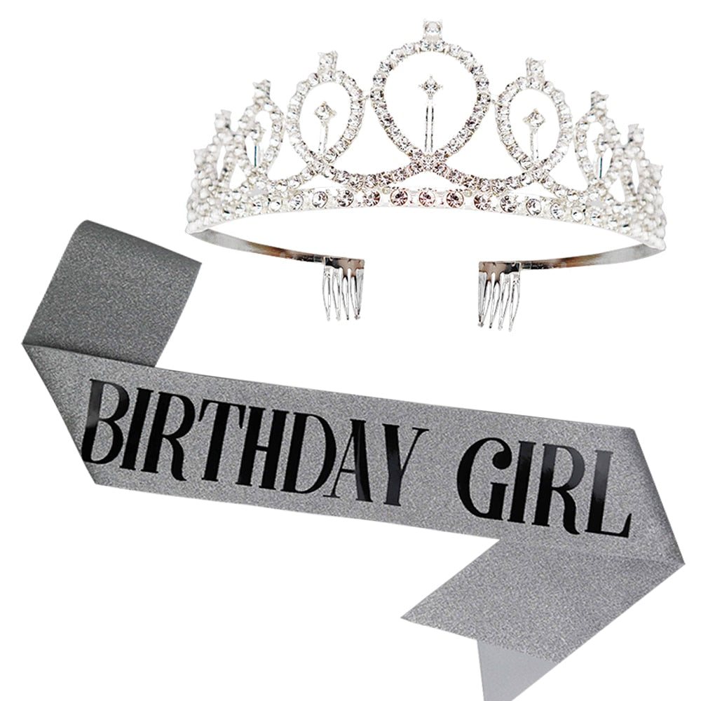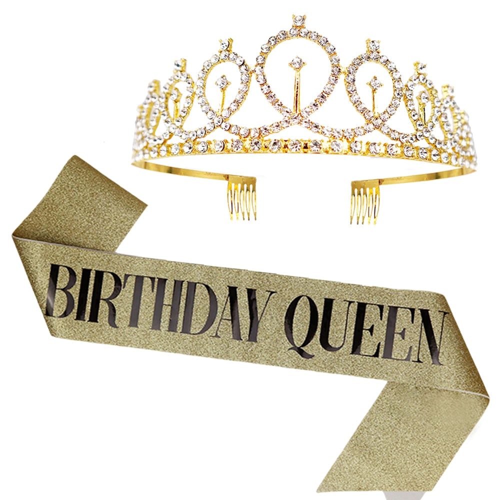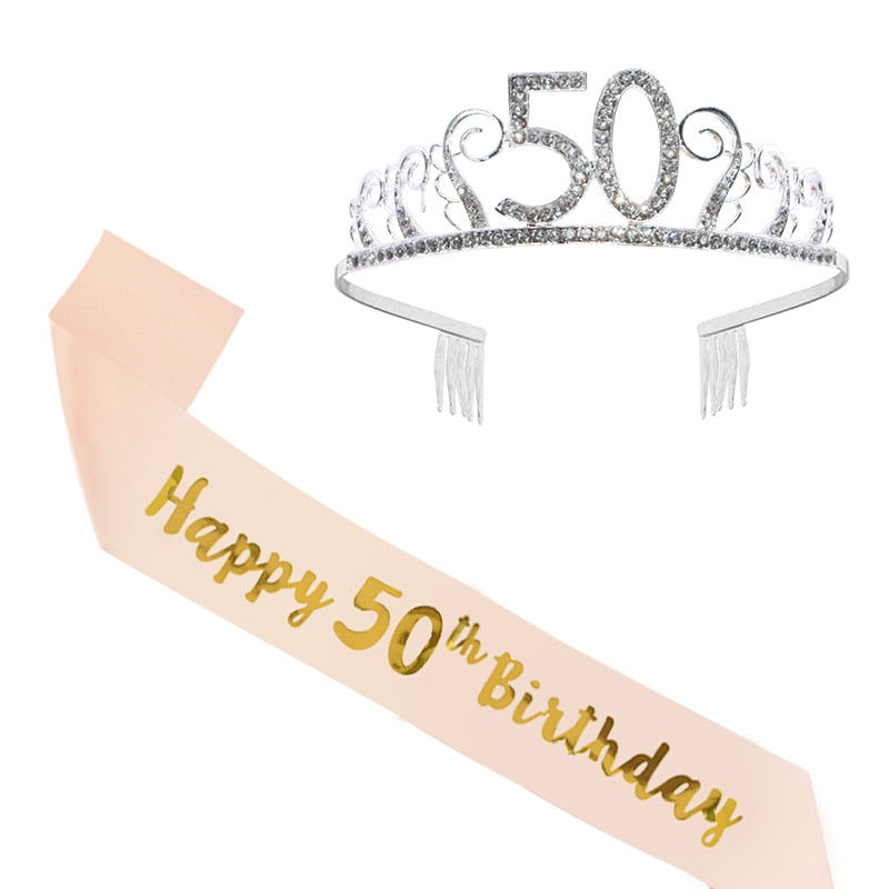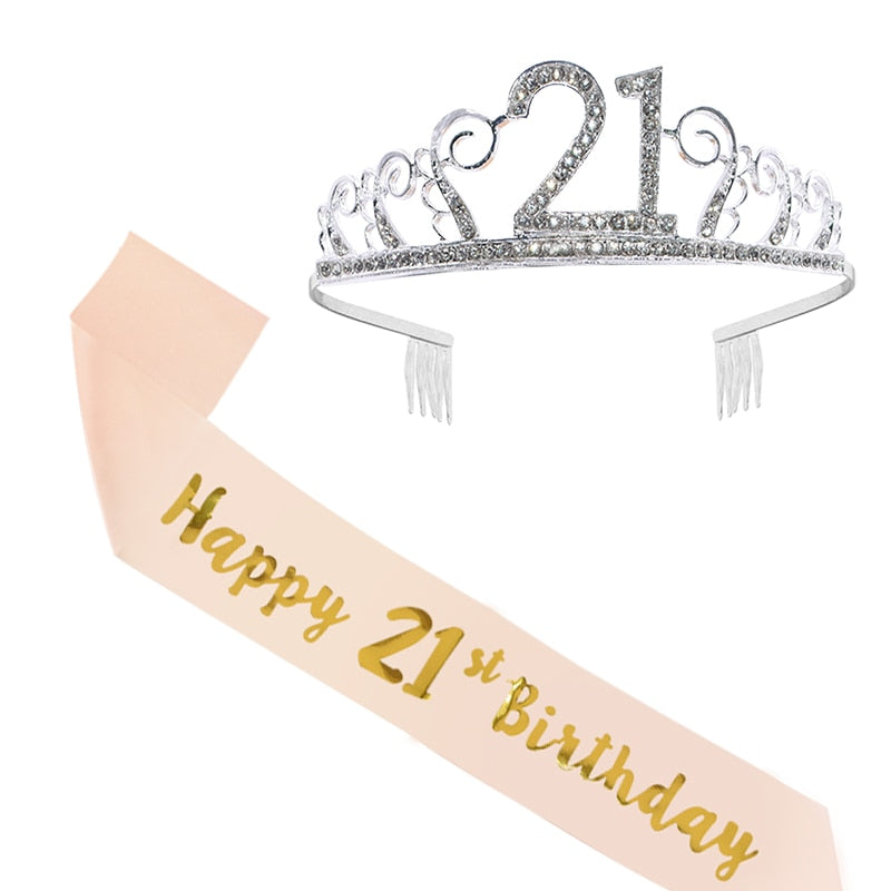 Birthday Party Decoration 18 21 30 40 50 Rose Gold Satin Sash Crystal Crown Tiara Happy Birthday Anniversary Party Supplies