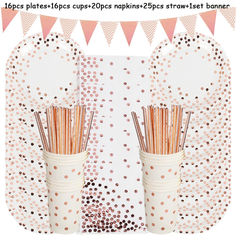 78pcs/set Rose Gold Party Disposable Tableware Set Rose Gold Cup Plates Straws Adult Birthday Party Decor Bridal Shower Supplies