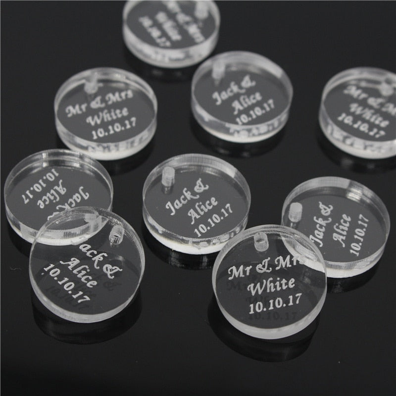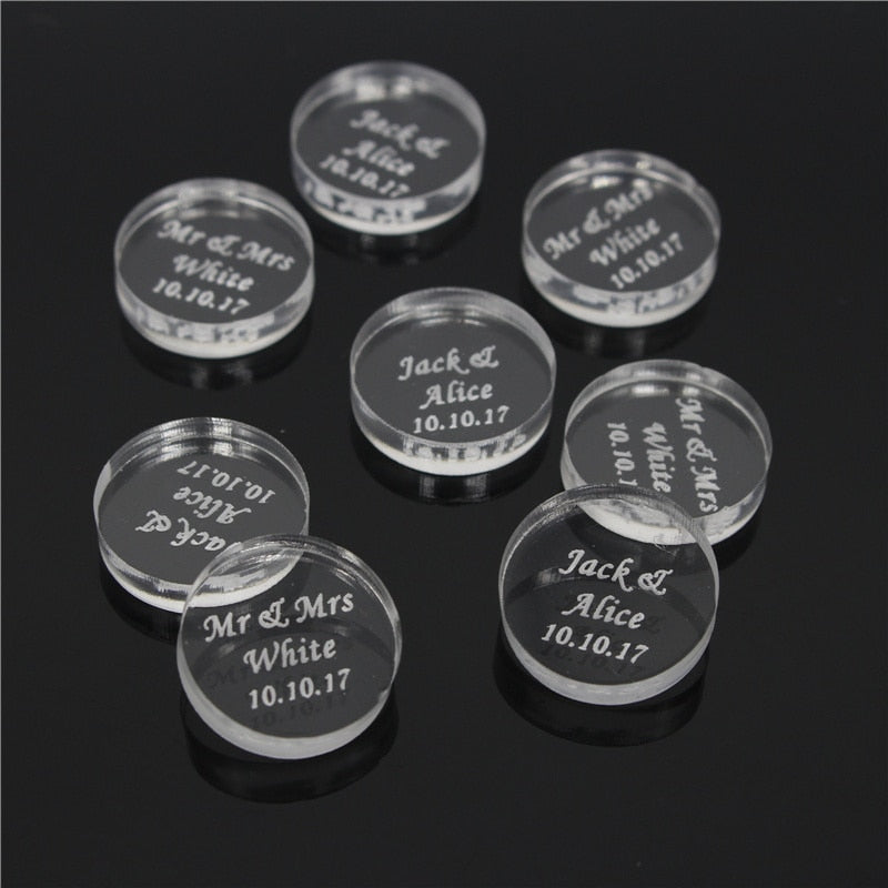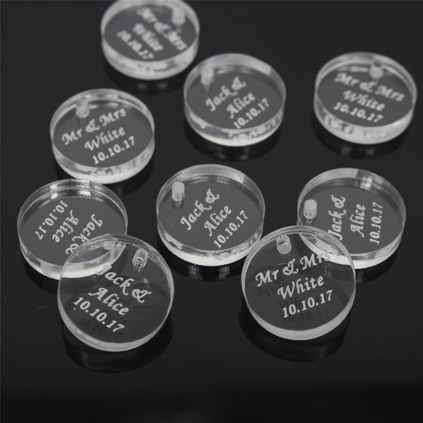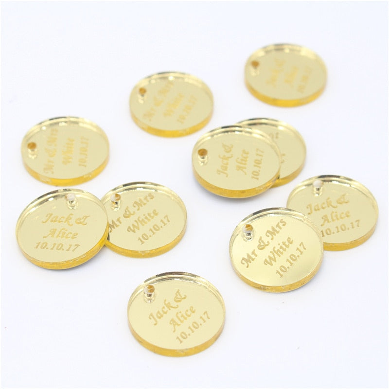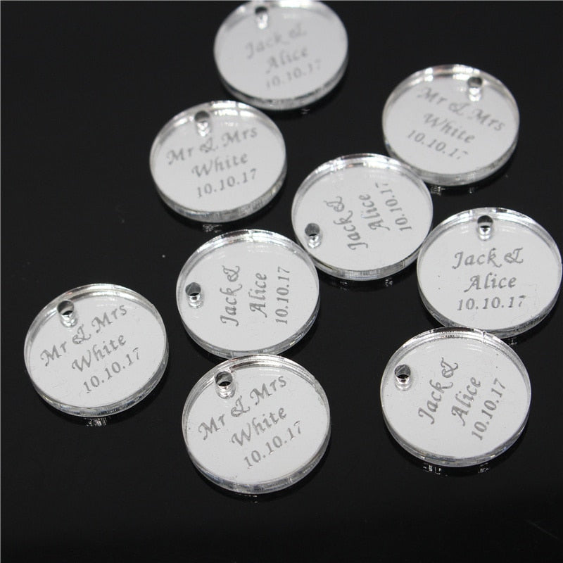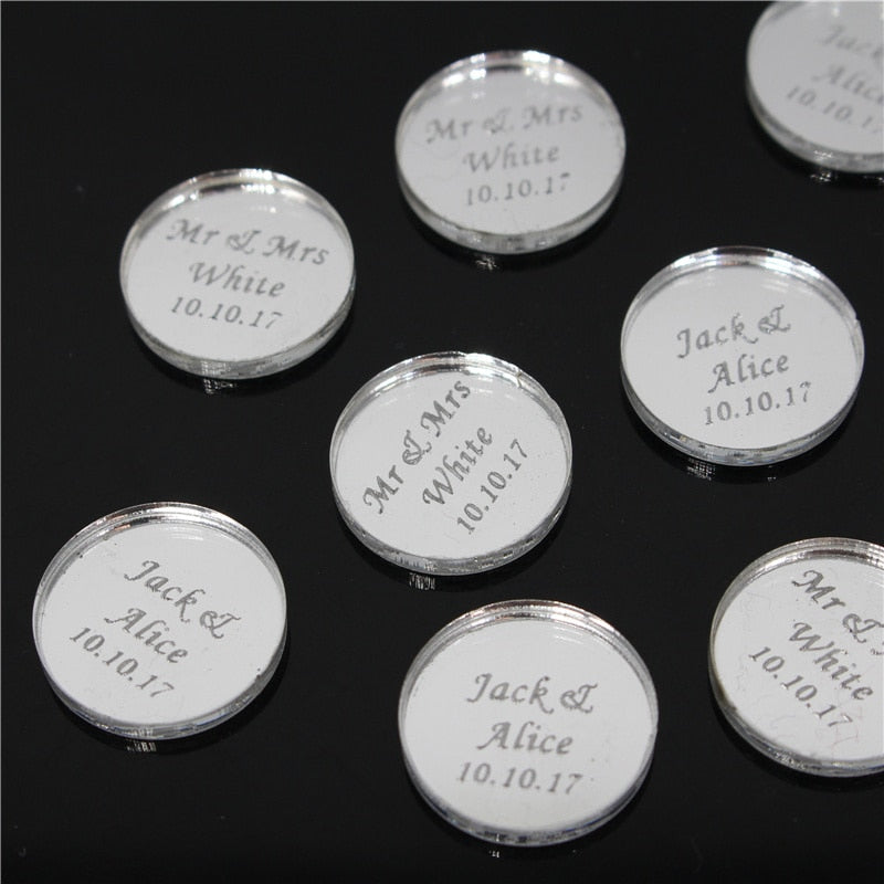 50*Personalized Bride Baptism Engraved Silver Mirror Round Decoration Coin Table Decor Circle Favor Tag For Wedding & Engagement