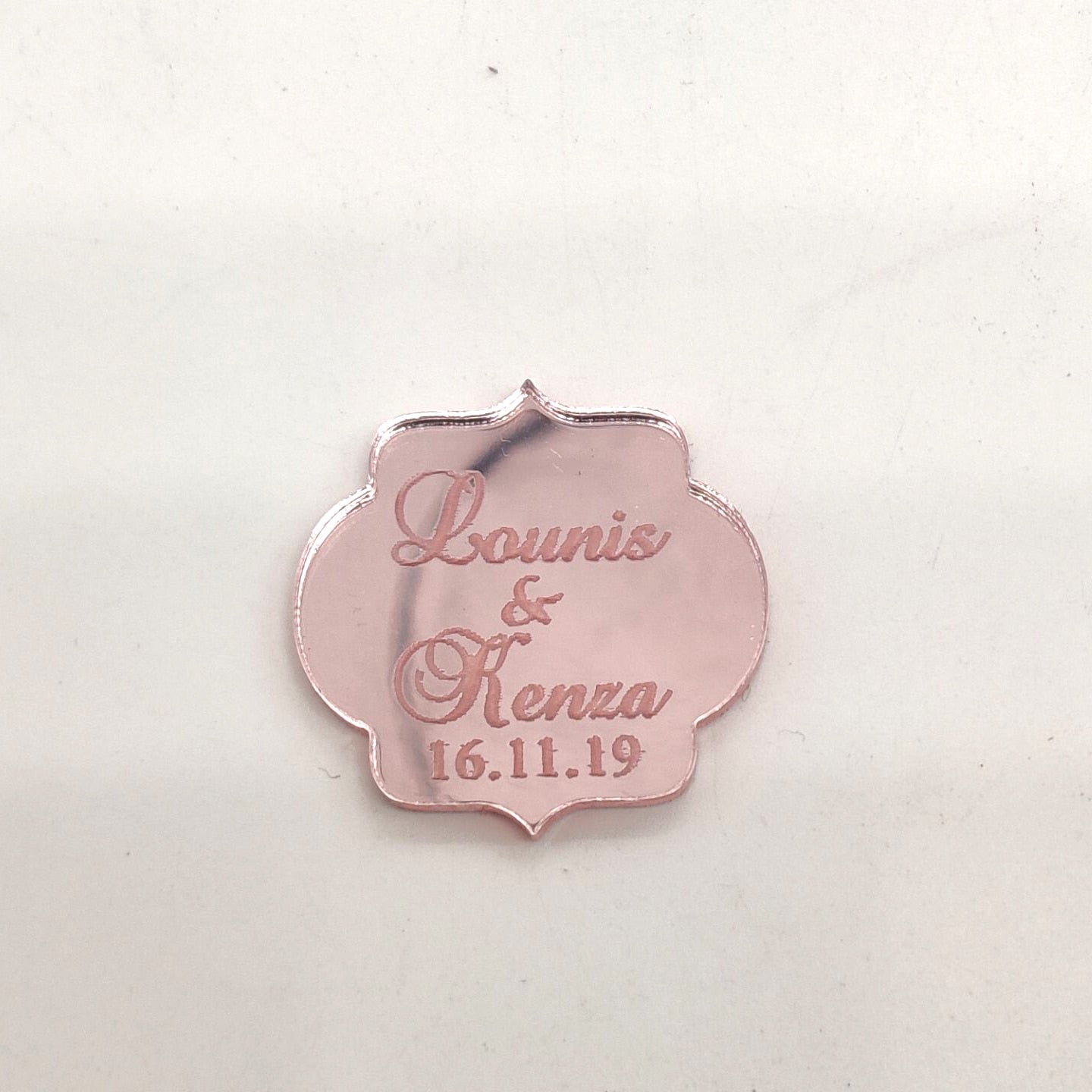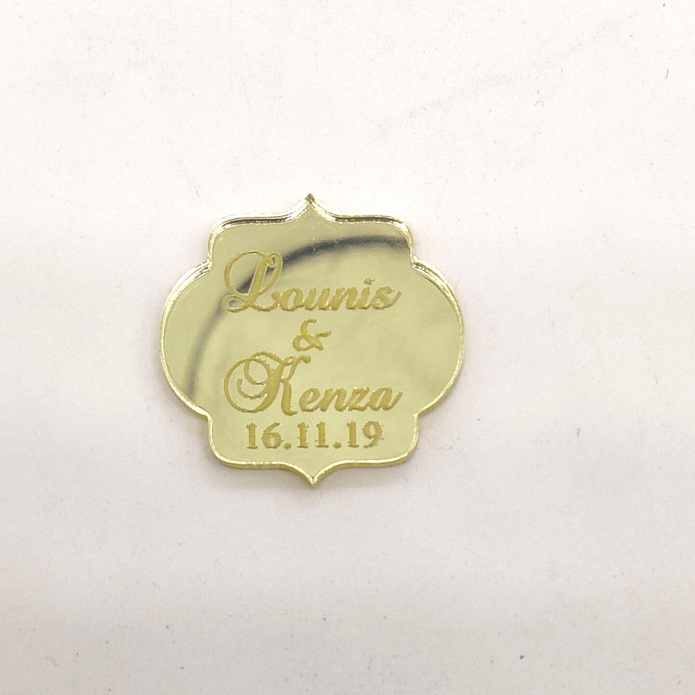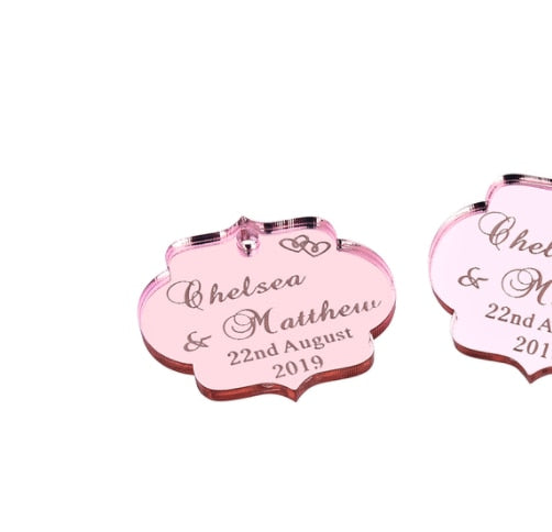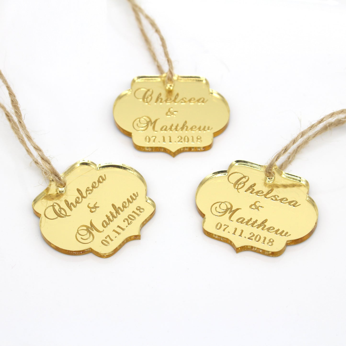 30Pcs Personalized Engraved Golden Mirror Acrylic Wedding Name Tag Bottle Label Custom Party Baby Shower Boutique Box Decoration