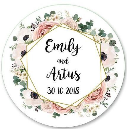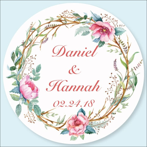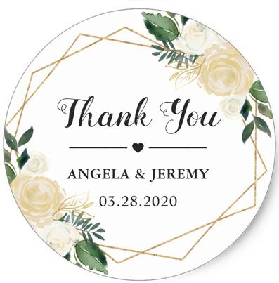 Personalized Round Label Sticker Custom Company Name, Custom Name Date Thank You Sticker for Bridal Shower Party Gifts