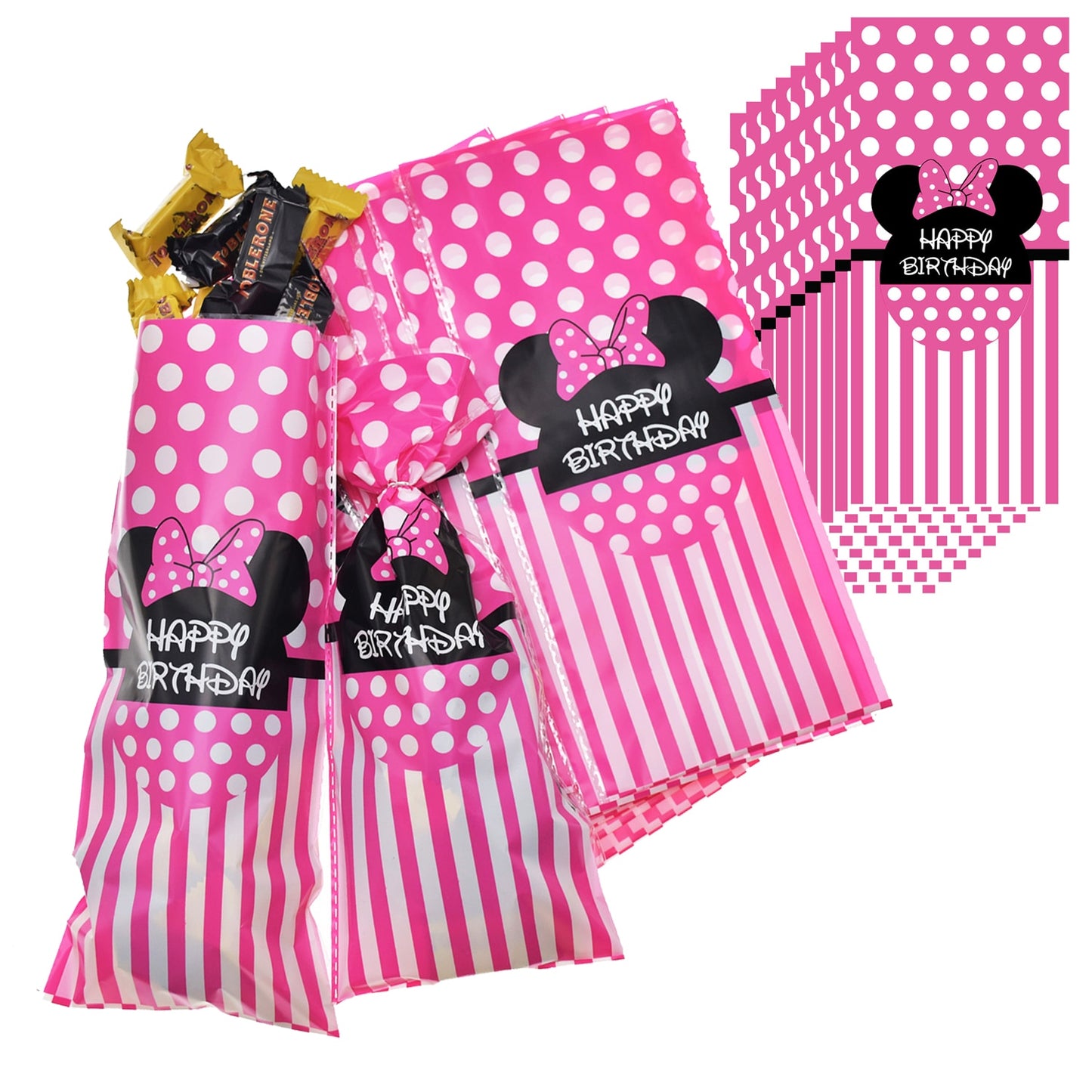 Pink Minnie Ears Cellophane Treat Bags Good for Bakery Cookies Candies Dessert with Sliver Twist Ties for Birthday Party Favors
