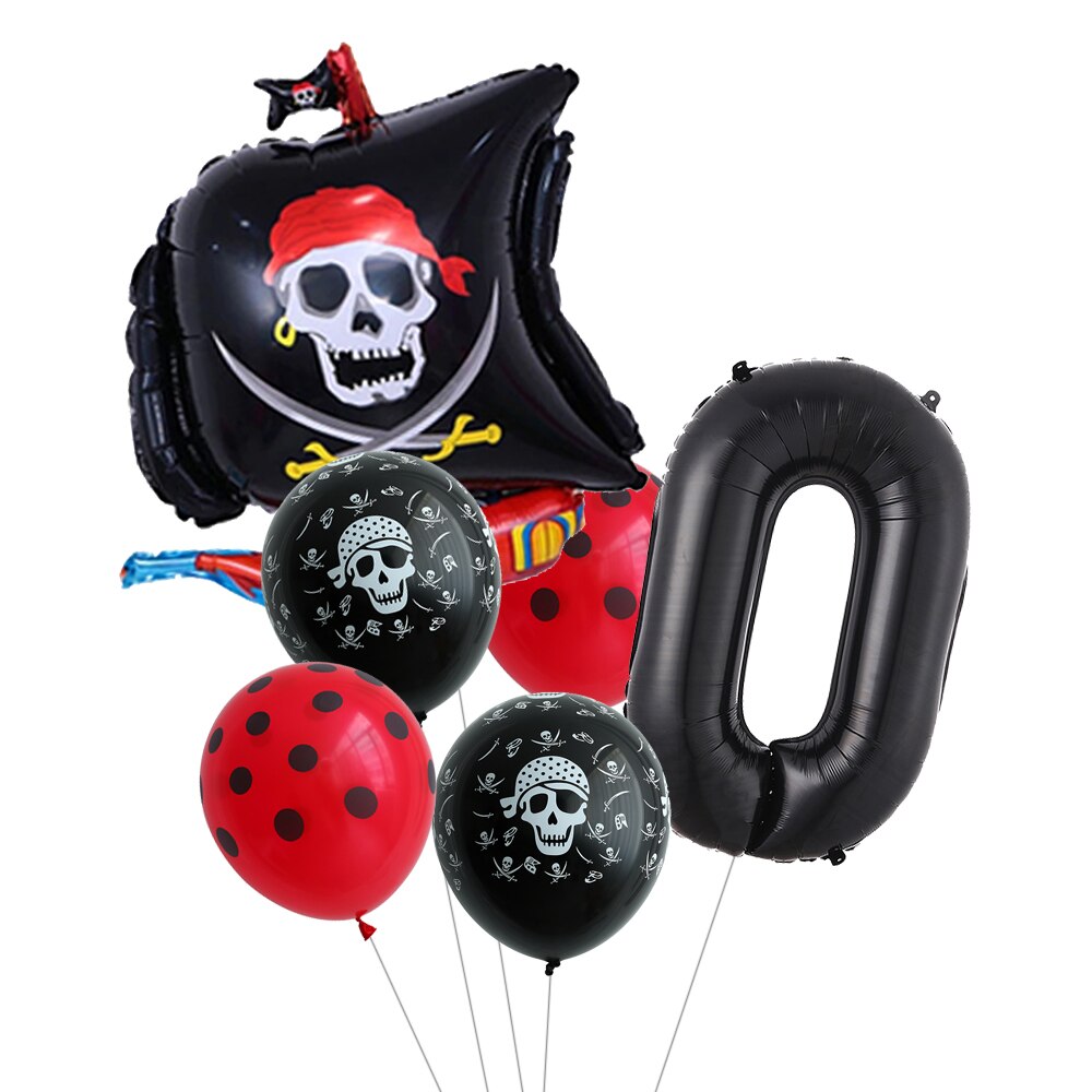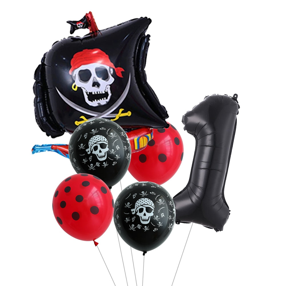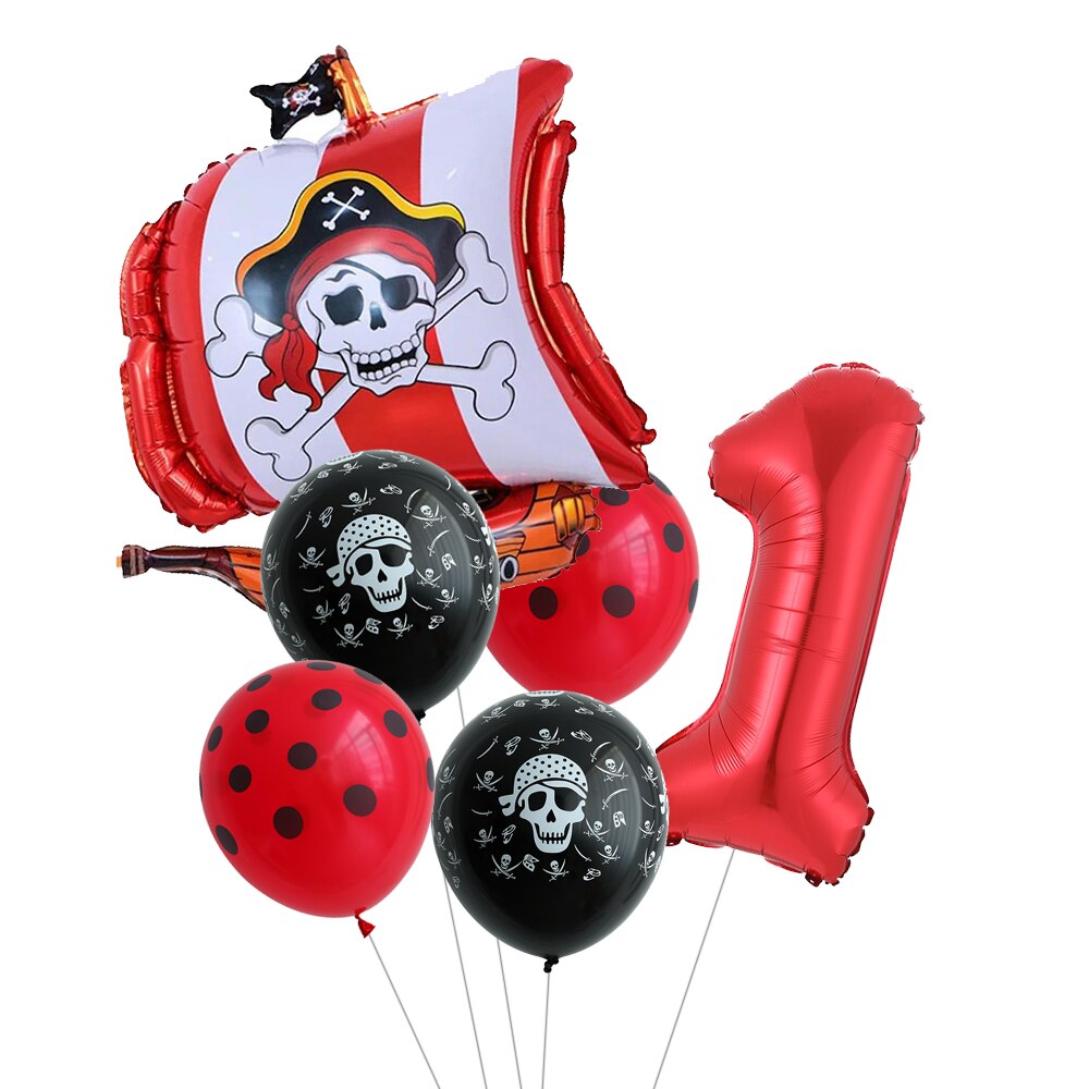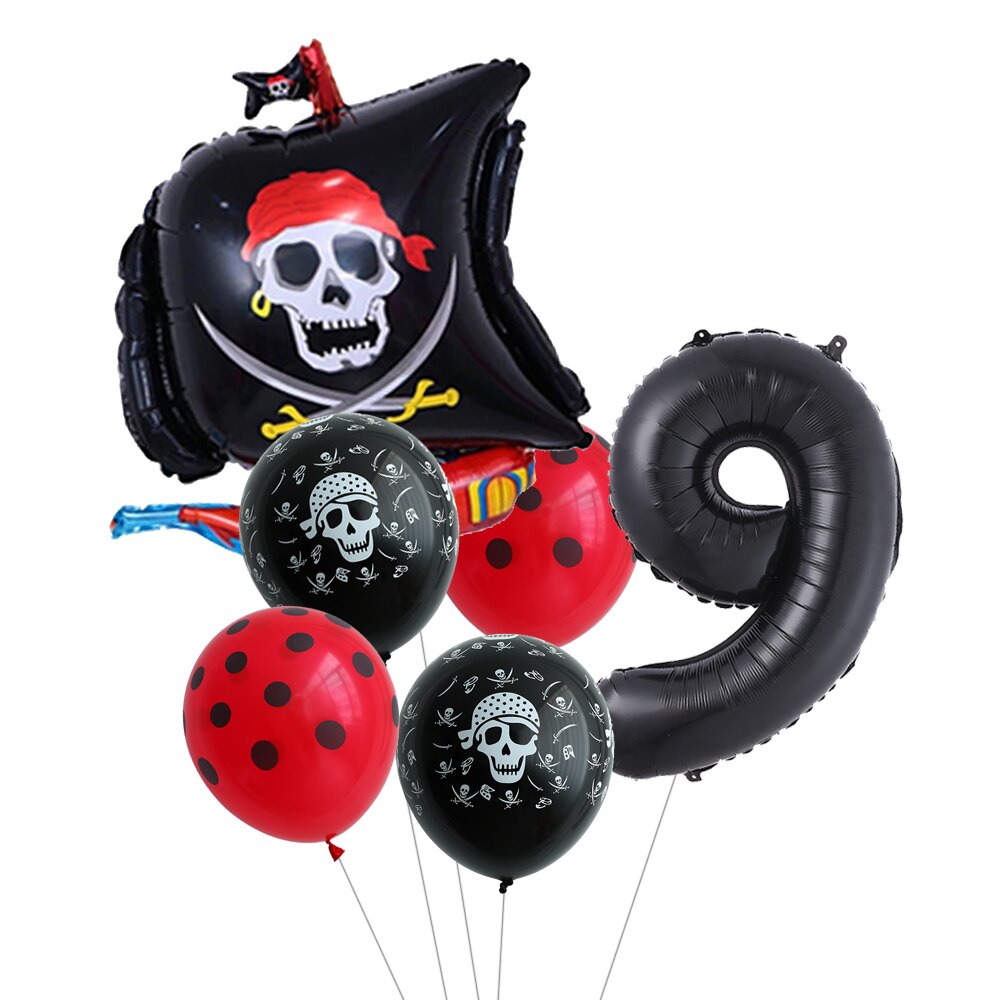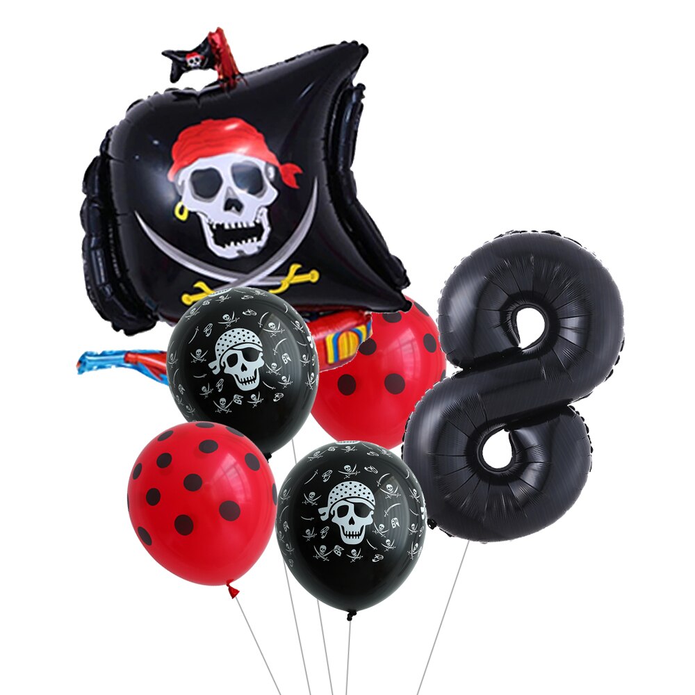 1Set Pirate Ship Balloons Polka Dot Skull Helium Balloon Boy Birthday Party Decoration Baby Shower Halloween Party Decor Globos
