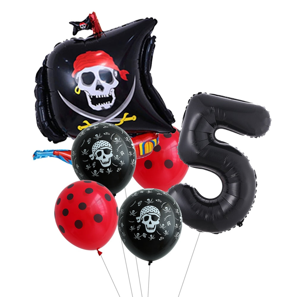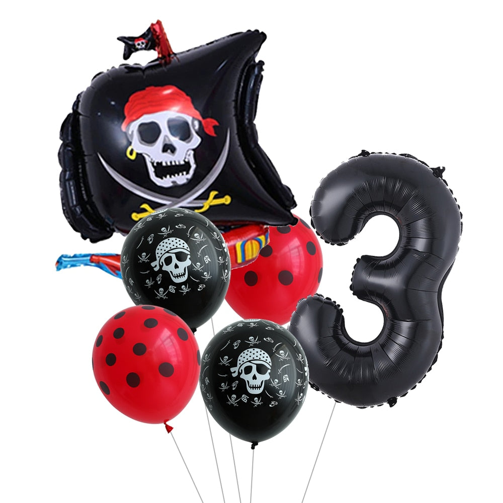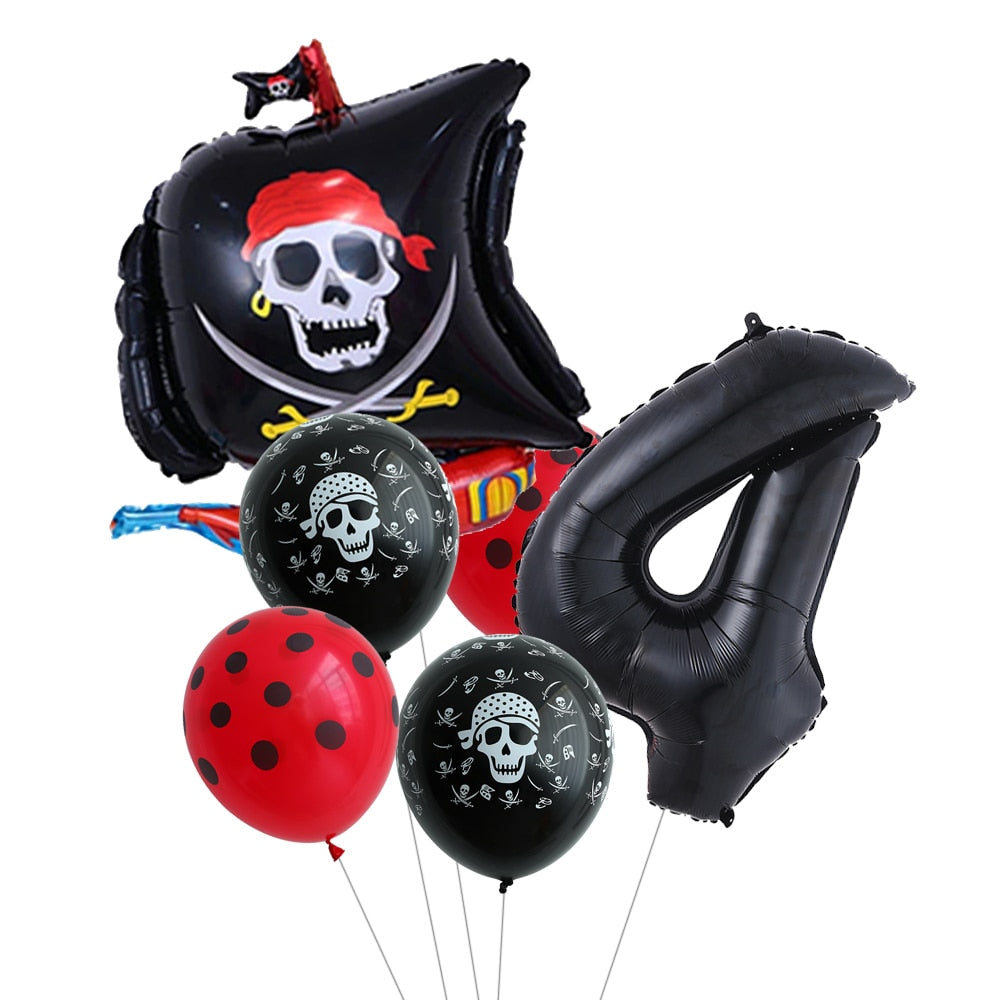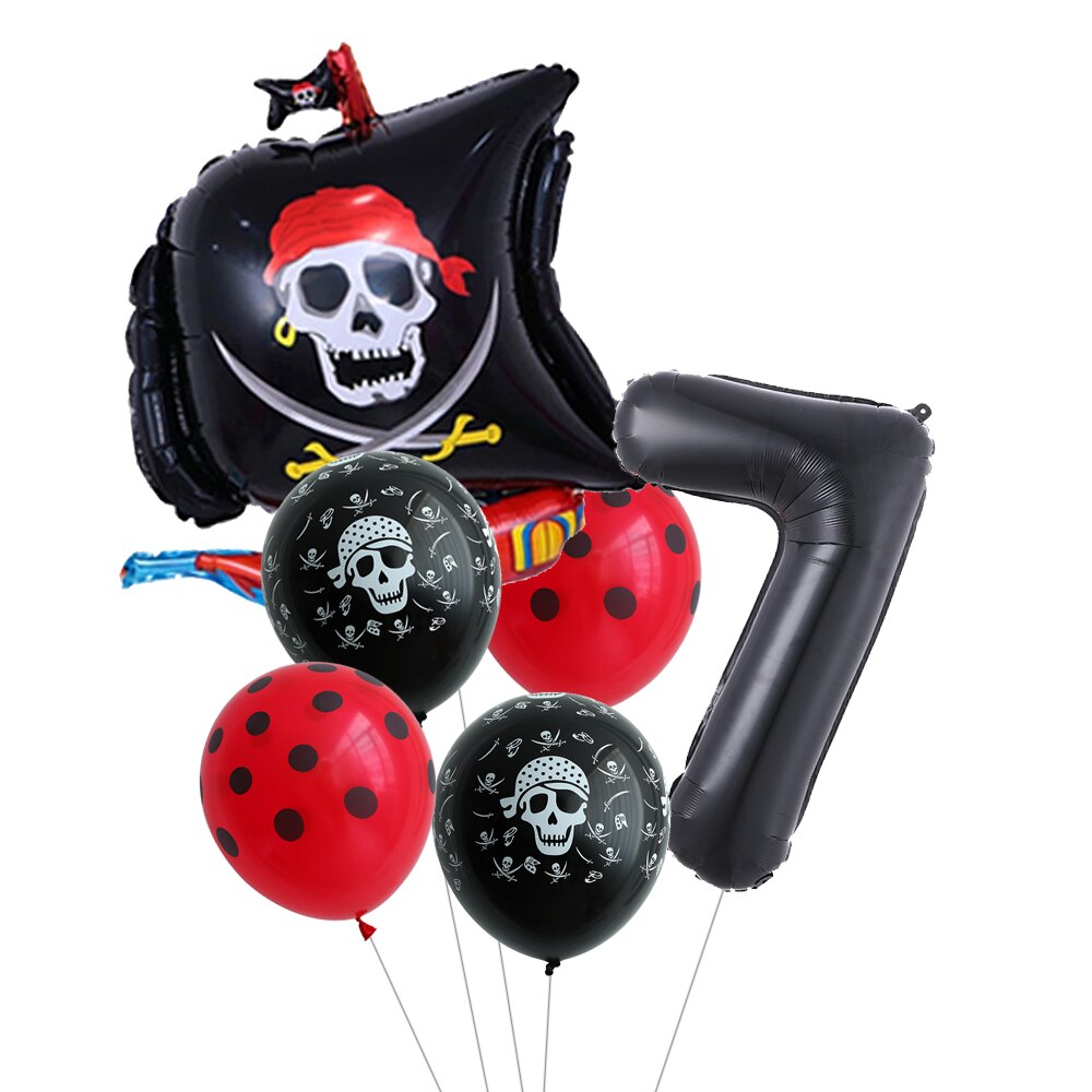 1Set Pirate Ship Balloons Polka Dot Skull Helium Balloon Boy Birthday Party Decoration Baby Shower Halloween Party Decor Globos