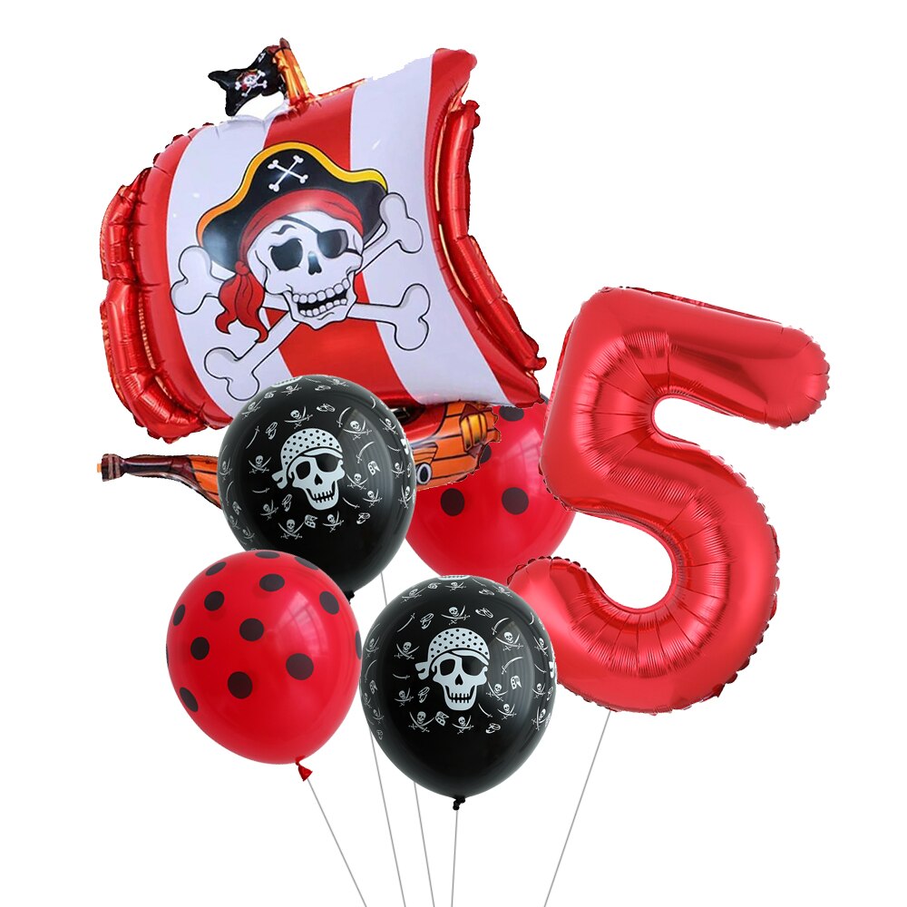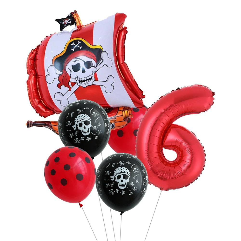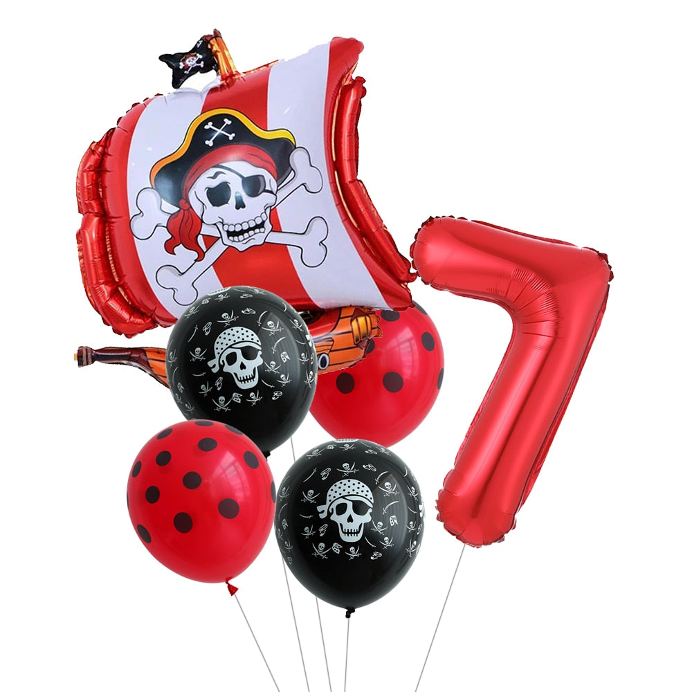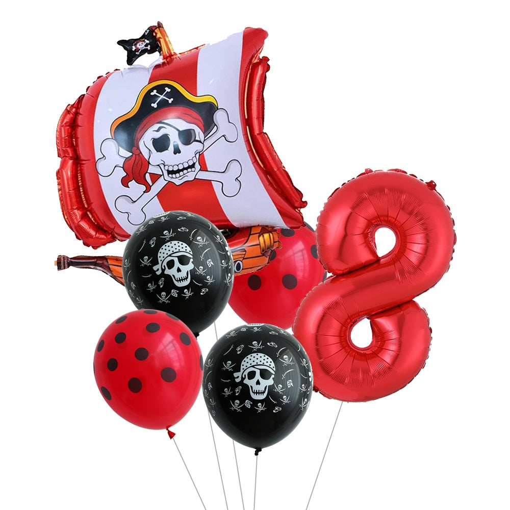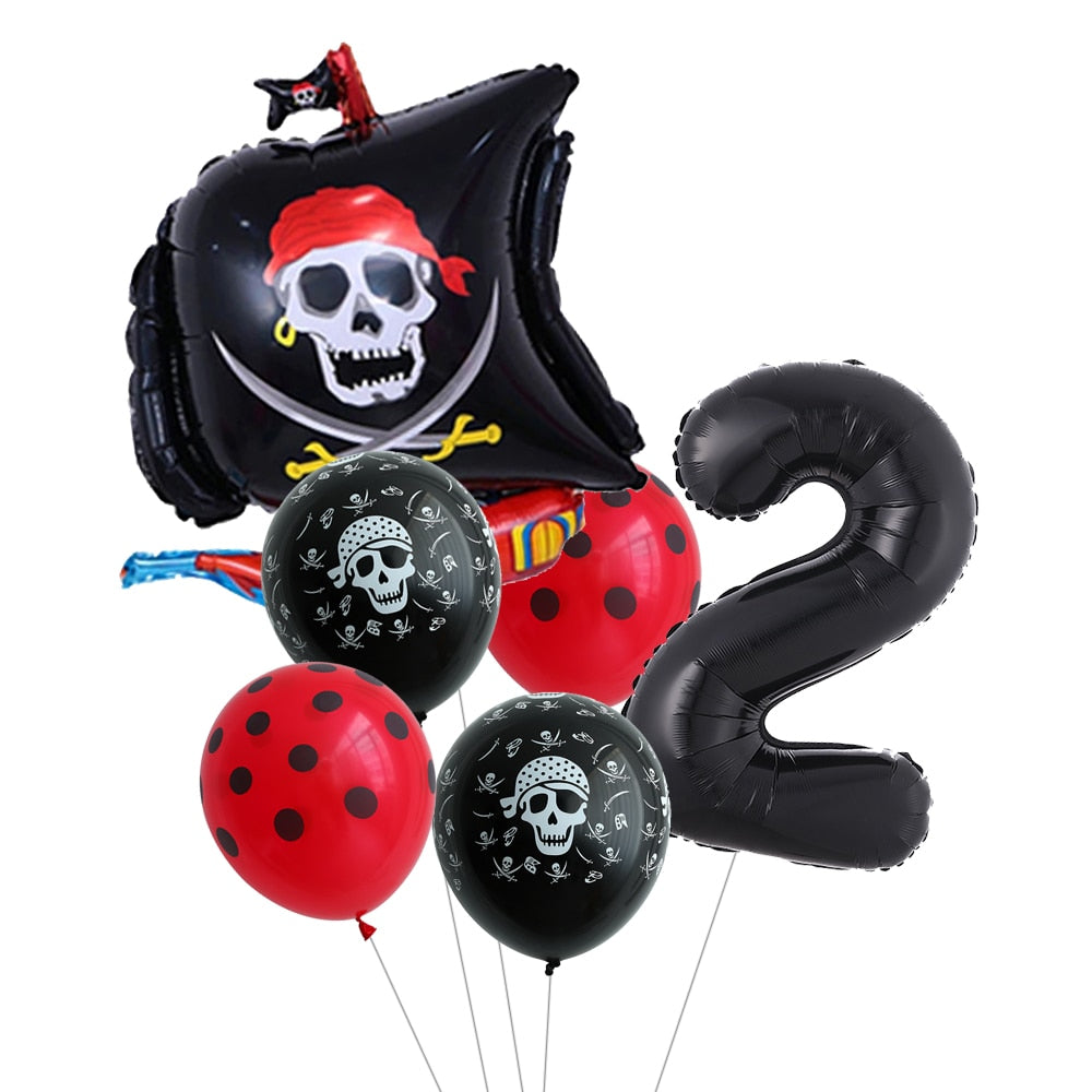 1Set Pirate Ship Balloons Polka Dot Skull Helium Balloon Boy Birthday Party Decoration Baby Shower Halloween Party Decor Globos