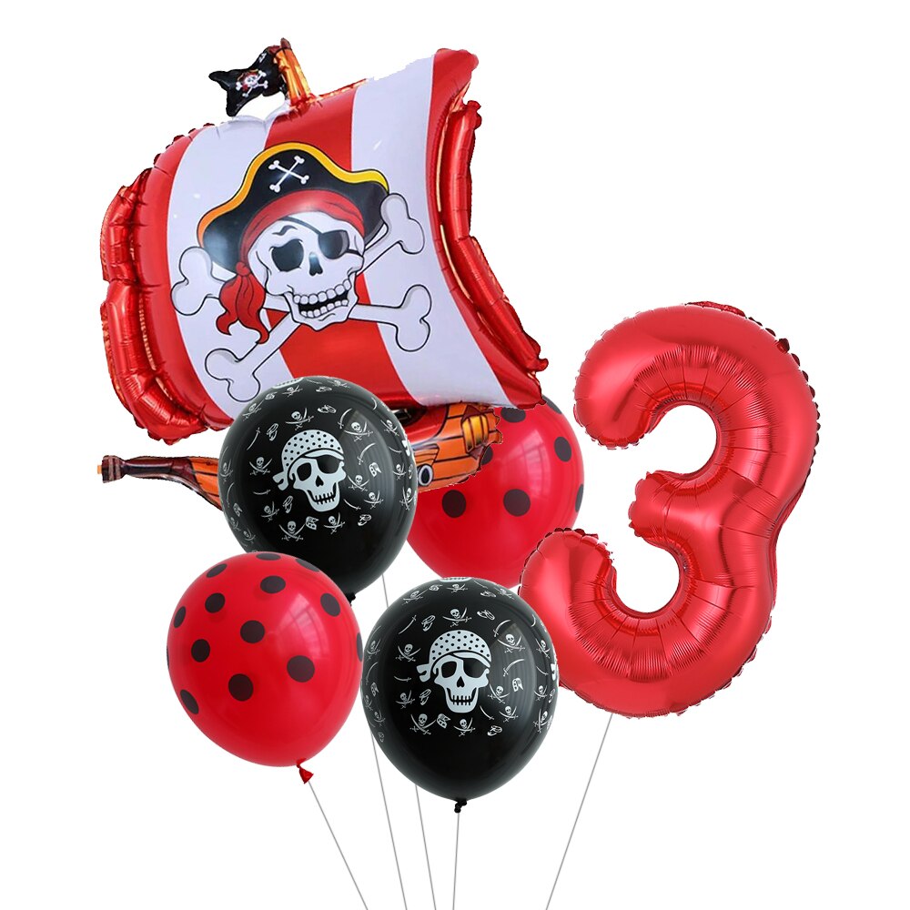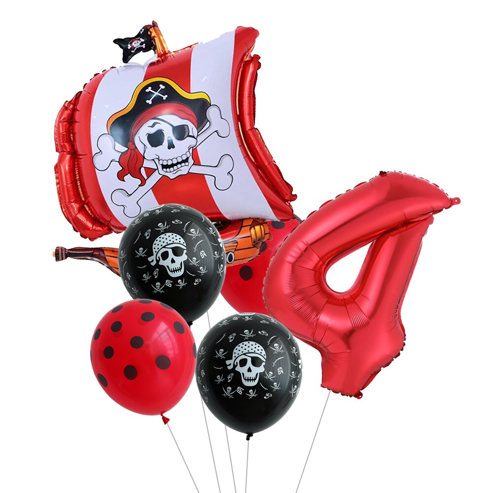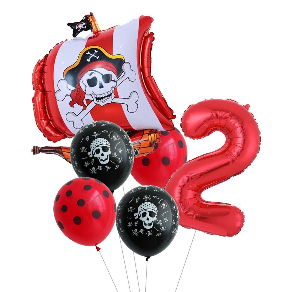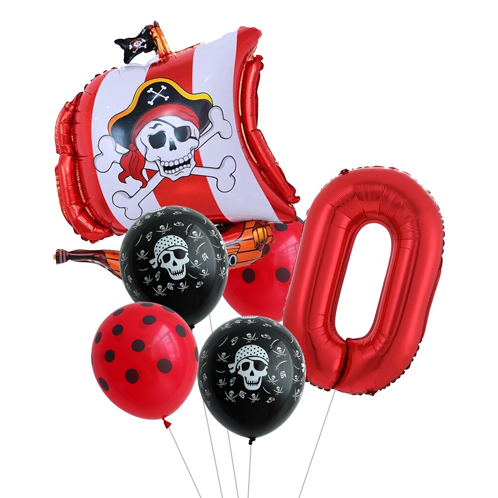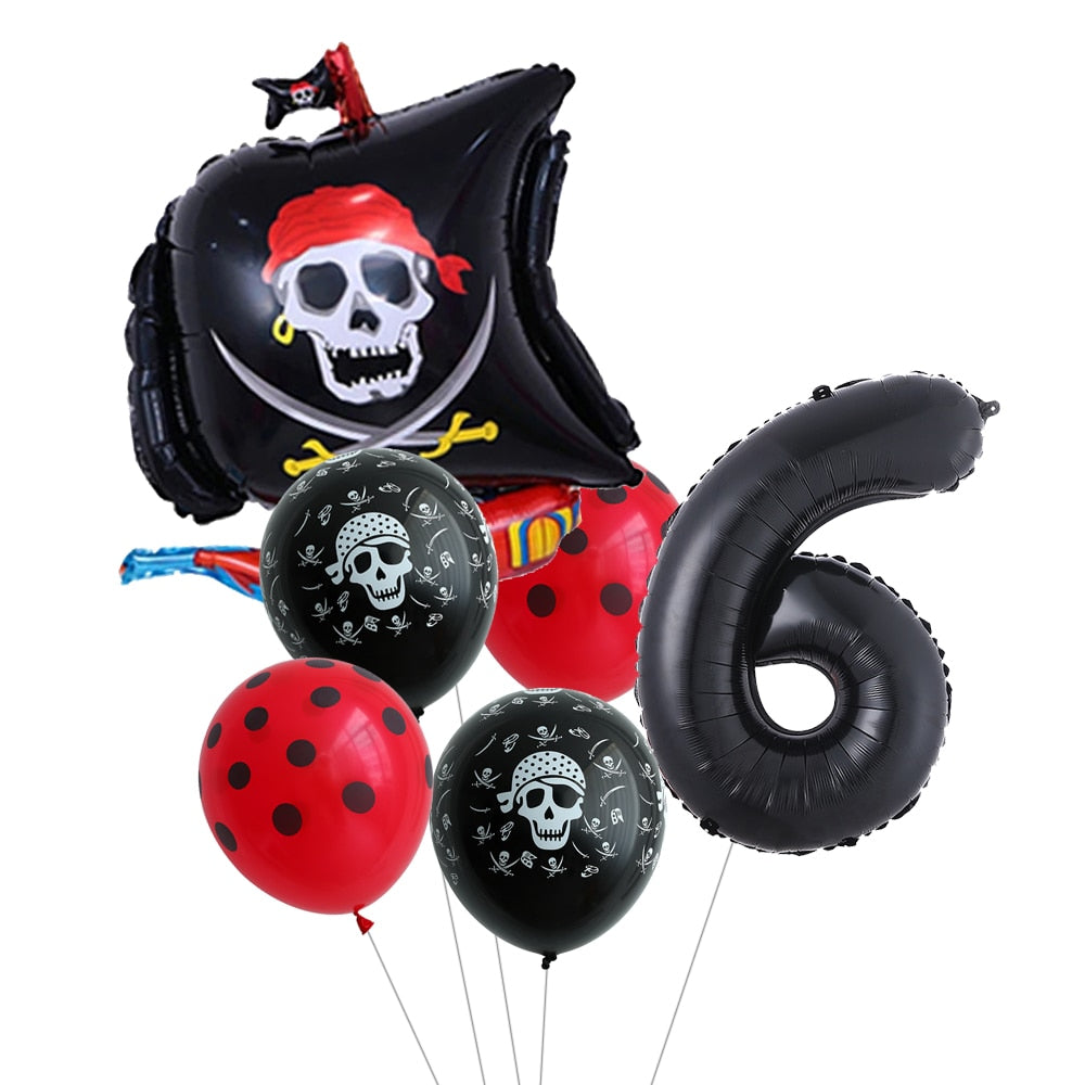 1Set Pirate Ship Balloons Polka Dot Skull Helium Balloon Boy Birthday Party Decoration Baby Shower Halloween Party Decor Globos