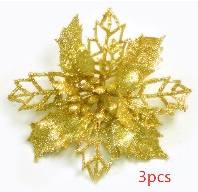In addition to its stunning appearance, this flower is made from plastic that has been infused with gold powder. This adds a touch of opulence and sophistication to the overall design, making it a perfect choice for those who prefer a luxurious and glamorous Christmas theme.