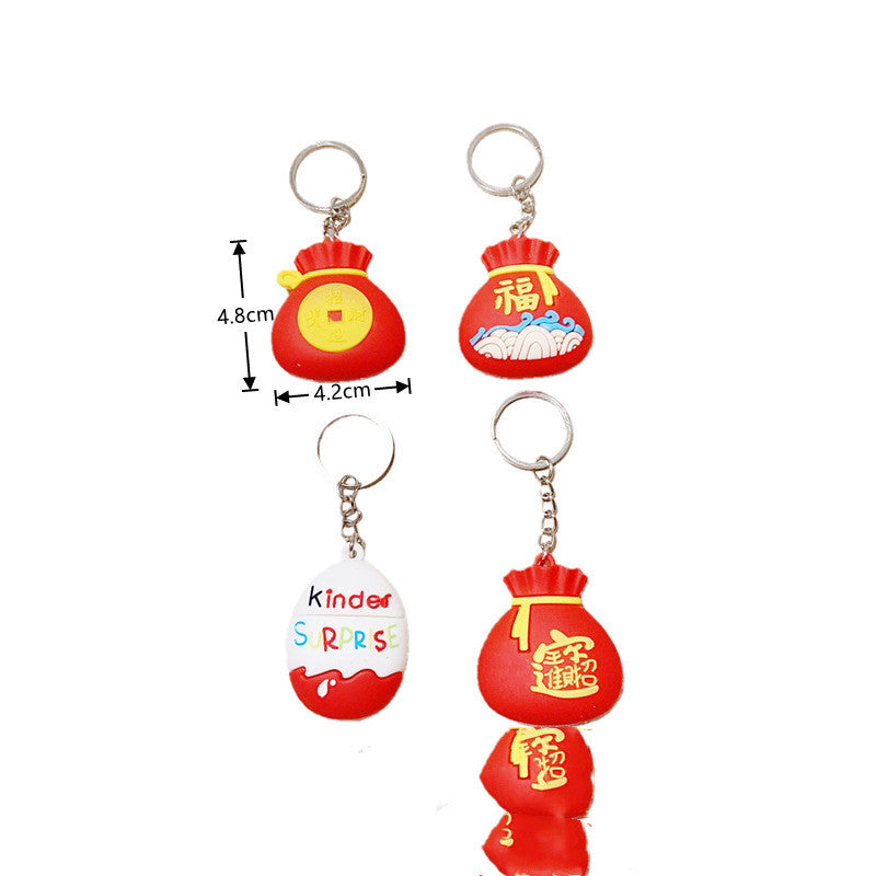 Celebrate the New Year in style with our PVC Soft Rubber New Year Festive Amass Fortunes Lucky Bag Keychain Pendant! This exquisite keychain pendant is the perfect accessory to bring good luck and fortune into your life during the festive season.