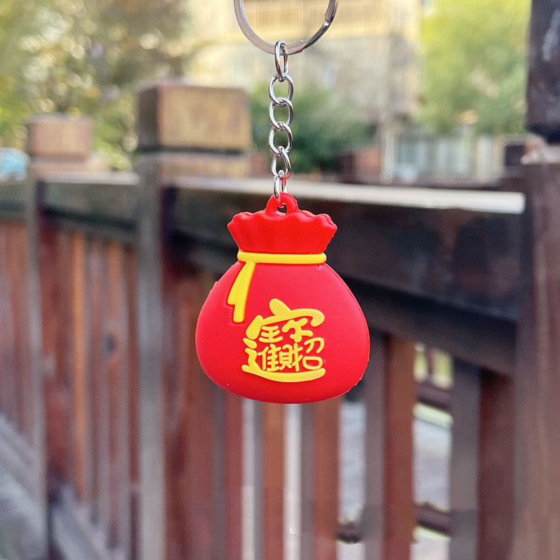 PVC Soft Rubber New Year Festive Amass Fortunes Lucky Bag Keychain Pendant