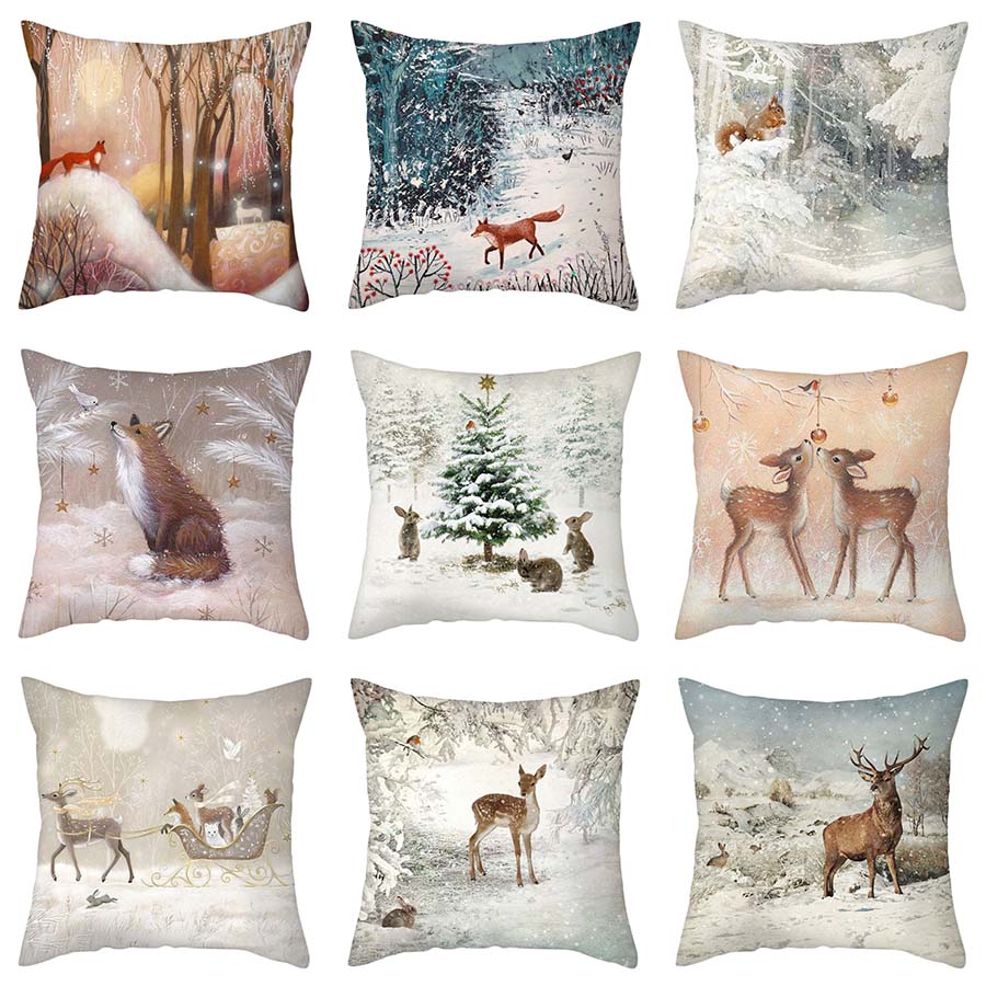 45x45cm Rabbit Elk Christmas Pillowcase Merry Christmas Decor for Home Cristmas Xmas Gift Navidad Noel Happy New Year