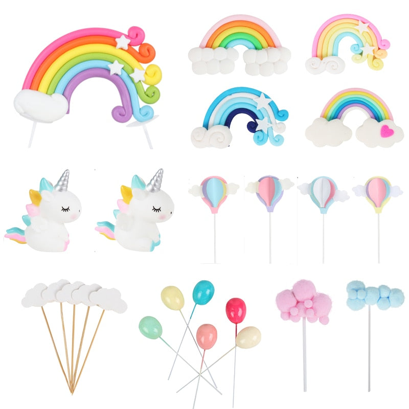 rainbow multi color cloud cupcake topper girls unicorn birthday party cake flags tag decor wedding dessert baking cake top deco