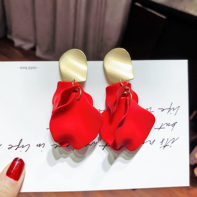 Red Rose Petal Earrings Valentine's Day Gift