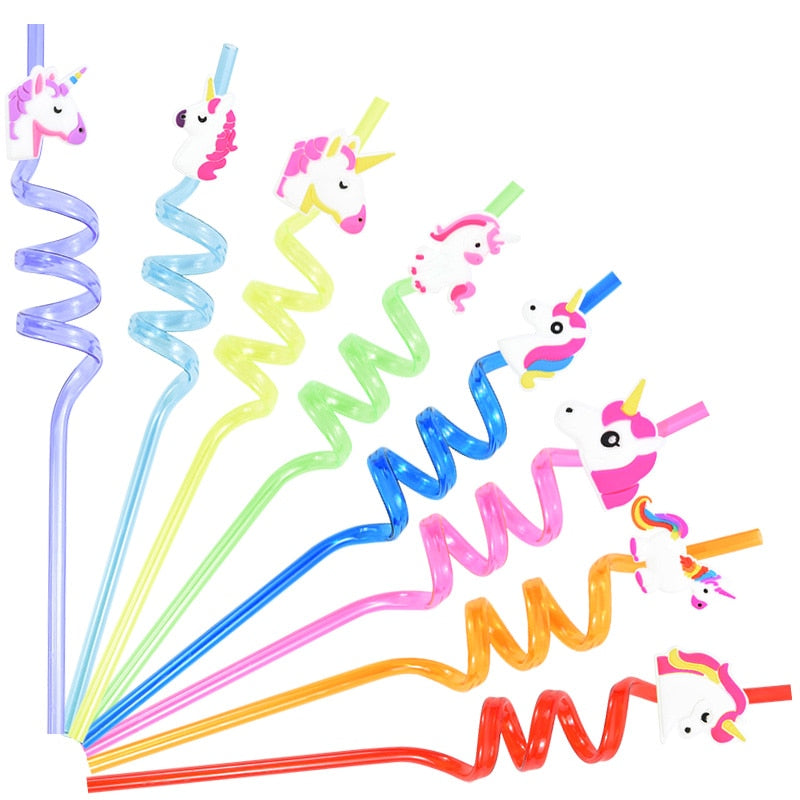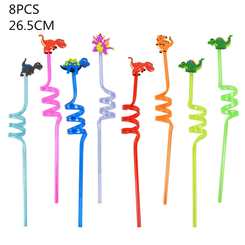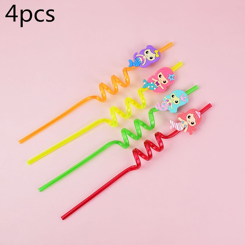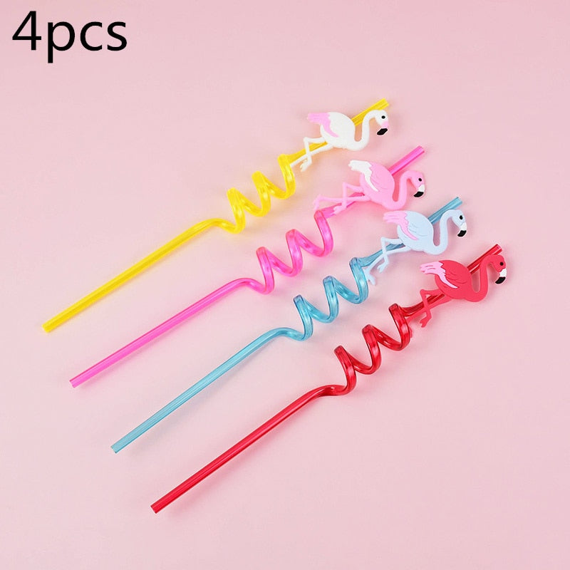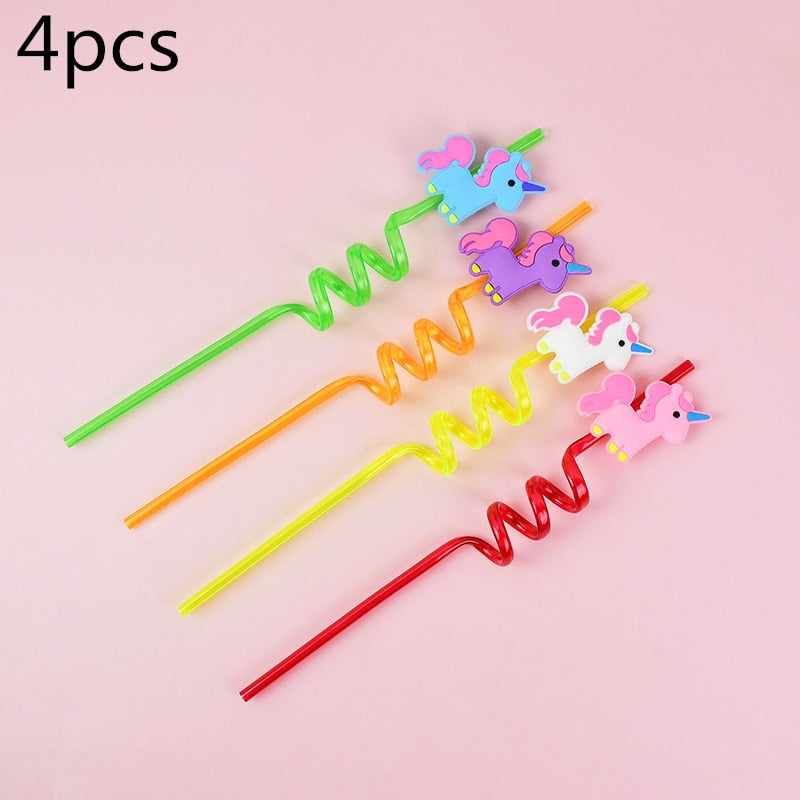 4/8pcs Reusable Unicorn Mermaid Flamingo Straw Smoothie Animal Drinking Straws Mermaid Theme Dinosaur Kids Fruit Party Supplies