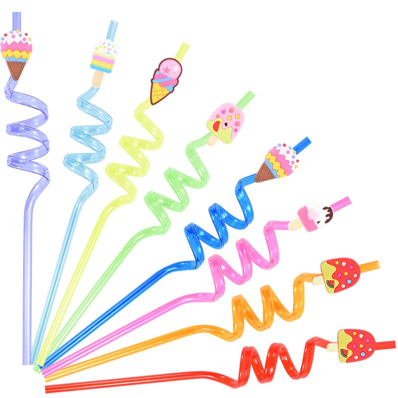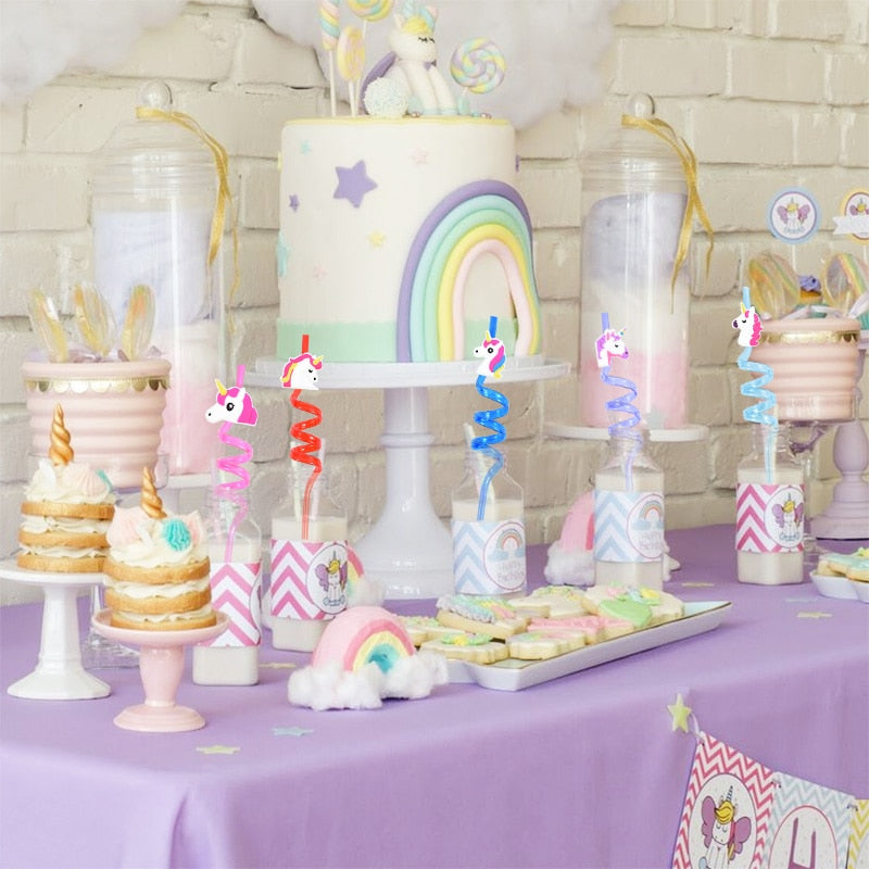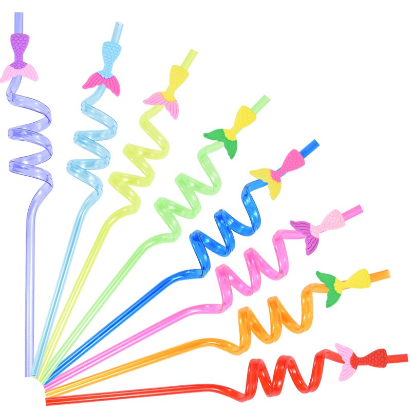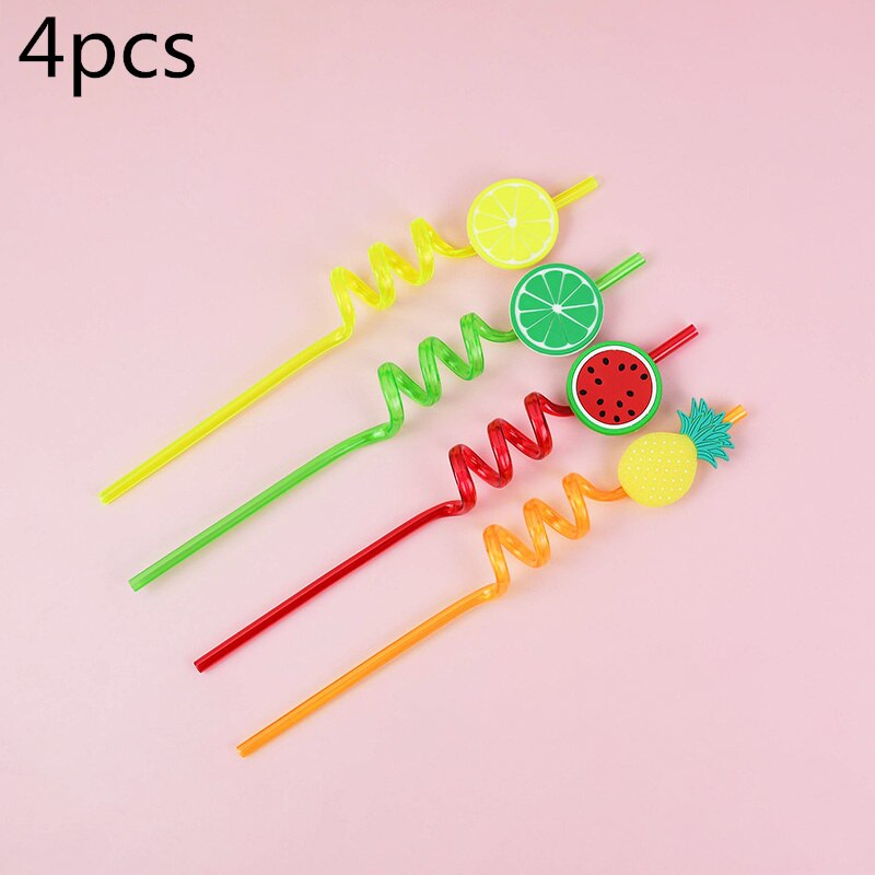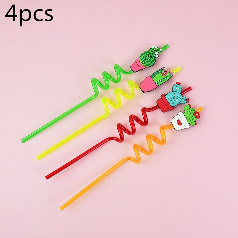 4/8pcs Reusable Unicorn Mermaid Flamingo Straw Smoothie Animal Drinking Straws Mermaid Theme Dinosaur Kids Fruit Party Supplies