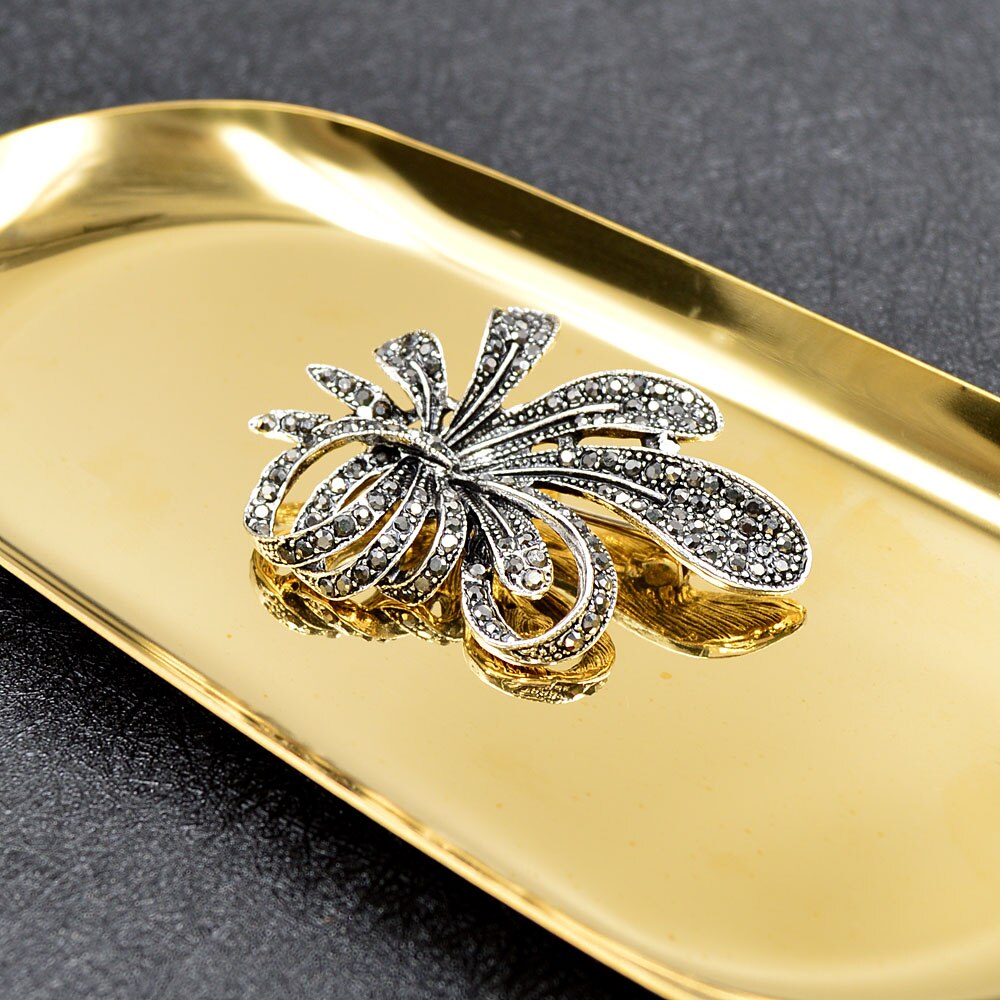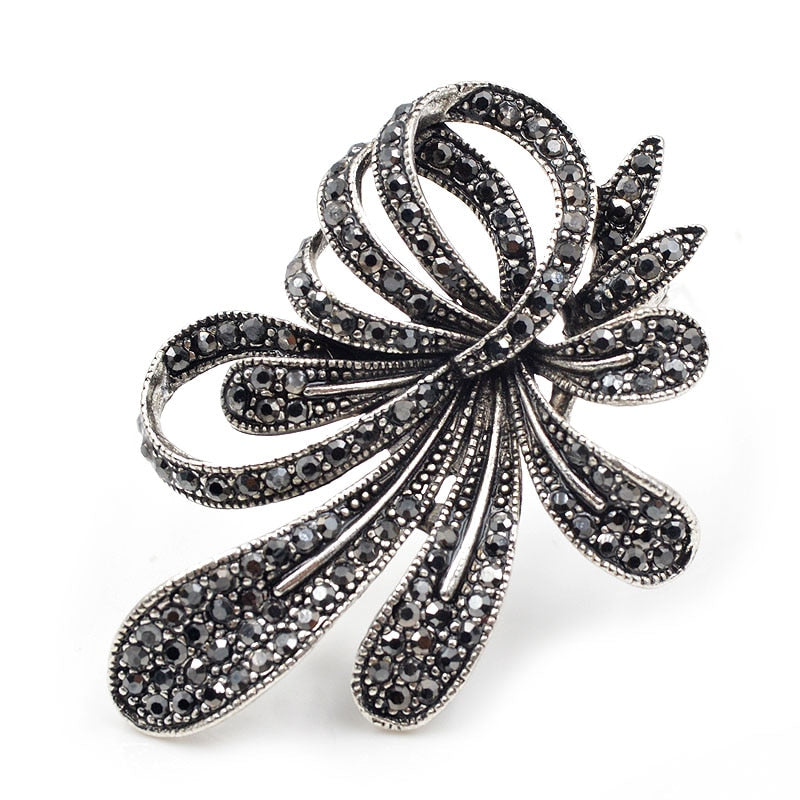 Rhinestone Black Flower Brooches for Women Vintage Antique Pin Elegant Exquisite Broches New Year Gift