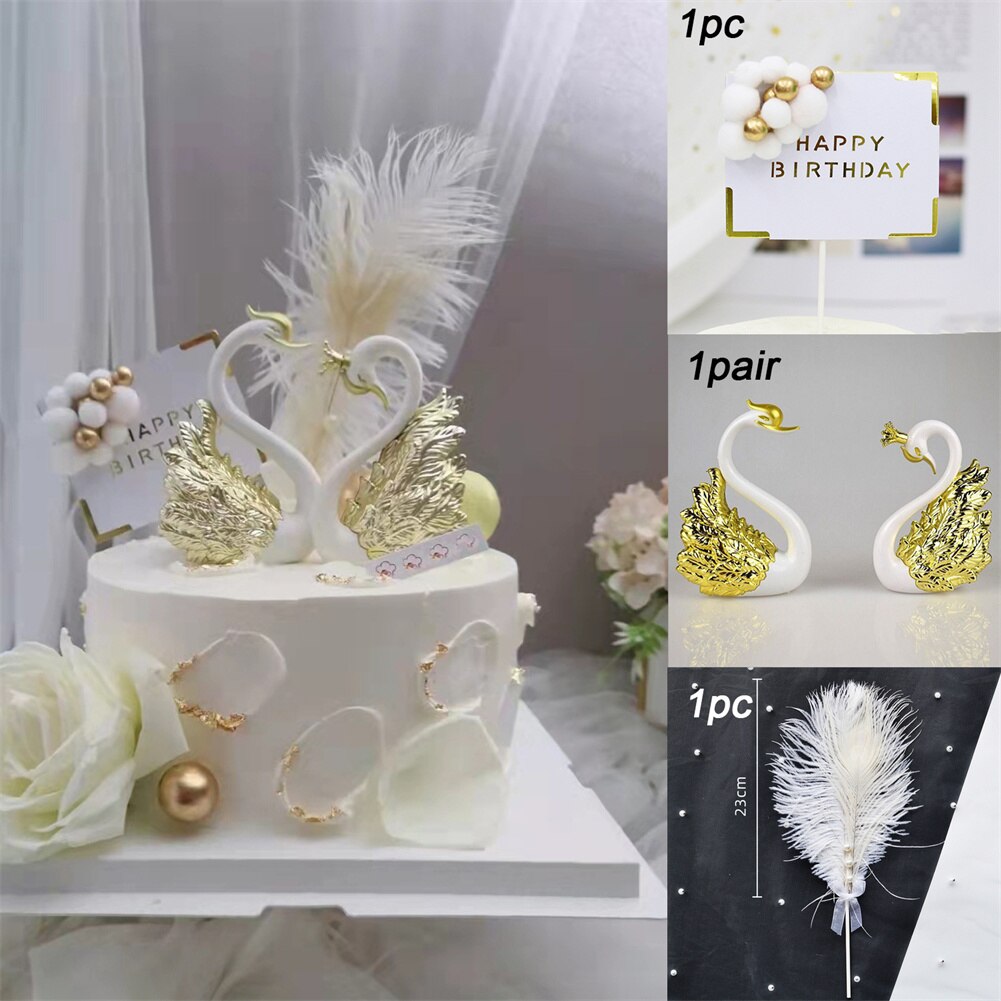 Romantic Crown Swan Happy Birthday Cake Topper Ornate Sets Dessert Baking Decor Wedding Cake Ornament Decoration Party Supplies