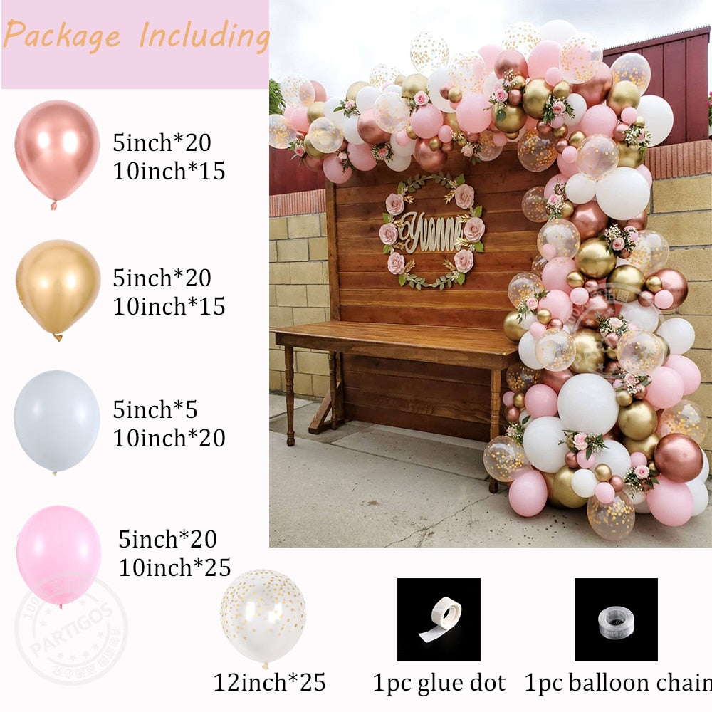 167pcs Rose Gold Balloon Garland Arch Kit Pink White Chrome Balloon Valentines Day Wedding Birthday Party Decoration Kids Globos
