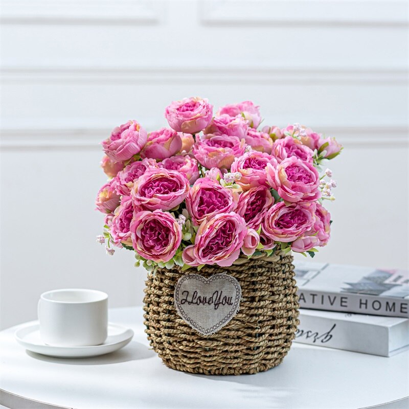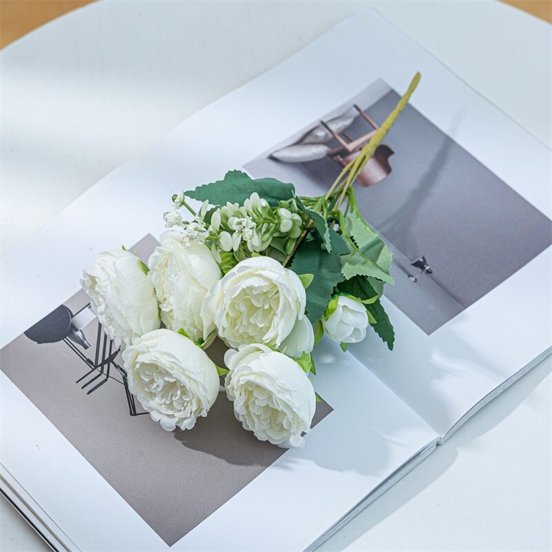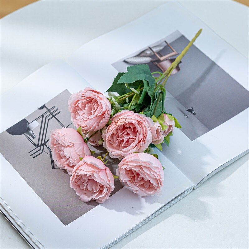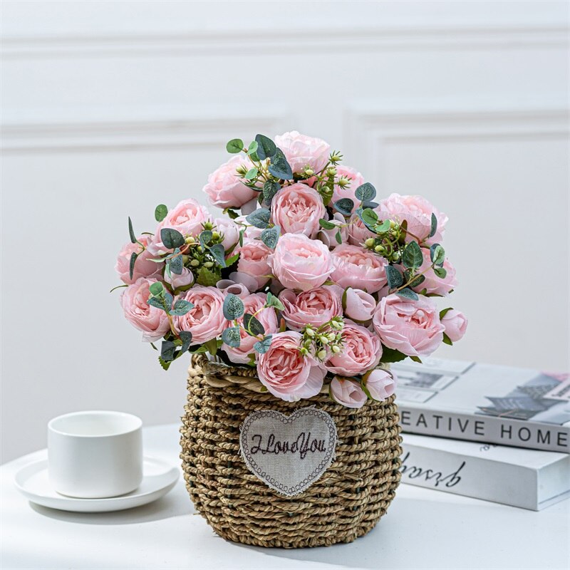 30cm Rose Pink Silk Peony Artificial Flowers Bouquet For Valentines Day Gifts Home Party Wedding Decoration Table Room
