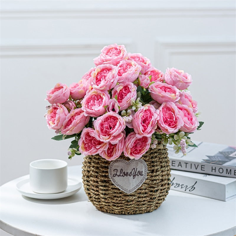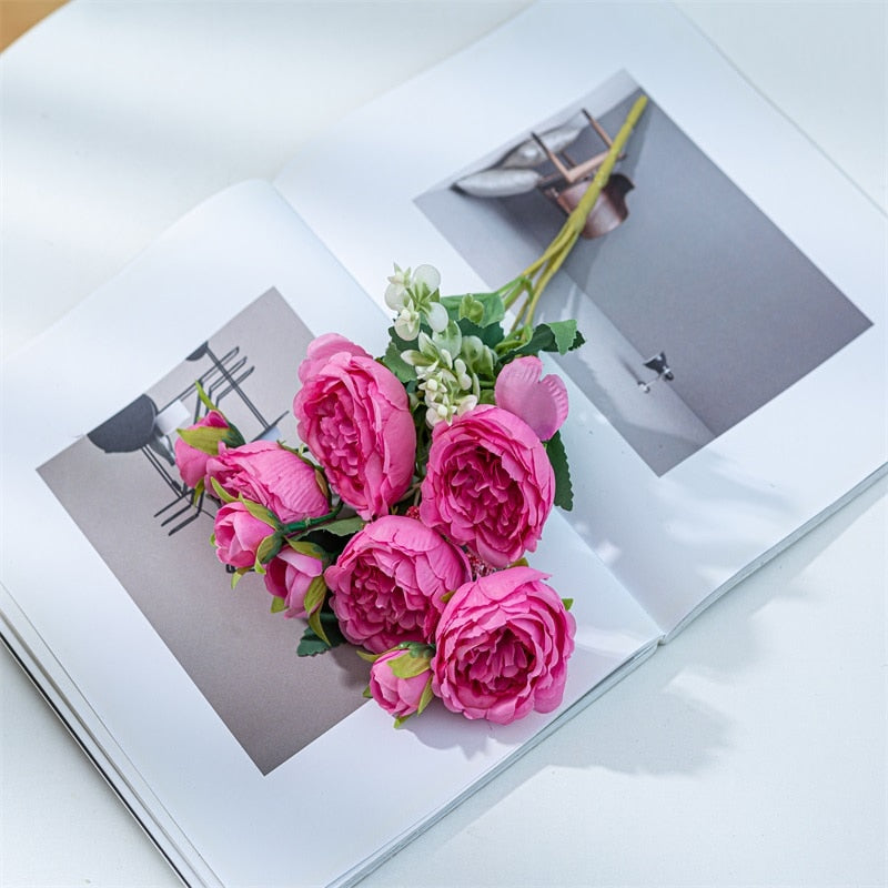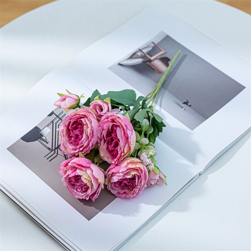 Rose Pink Silk Peony Artificial Flowers Bouquet