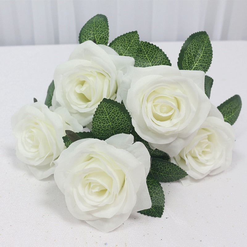 34cm Rose Silk Artificial Flowers Small Bouquet 5 Head Fake Flower Valentine's Day Wedding Decoration Indoor Flores DIY Supplies