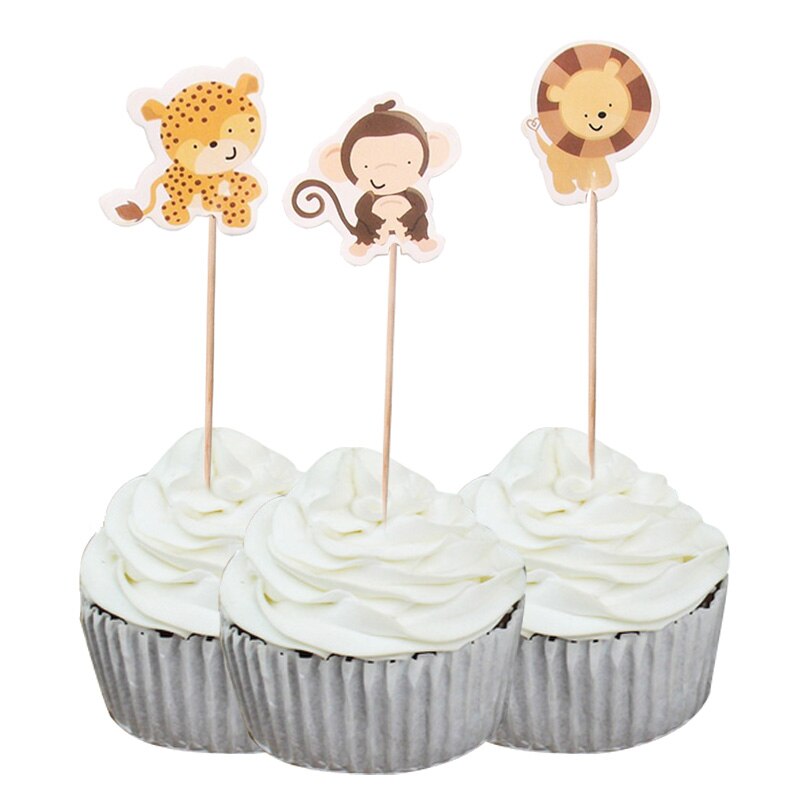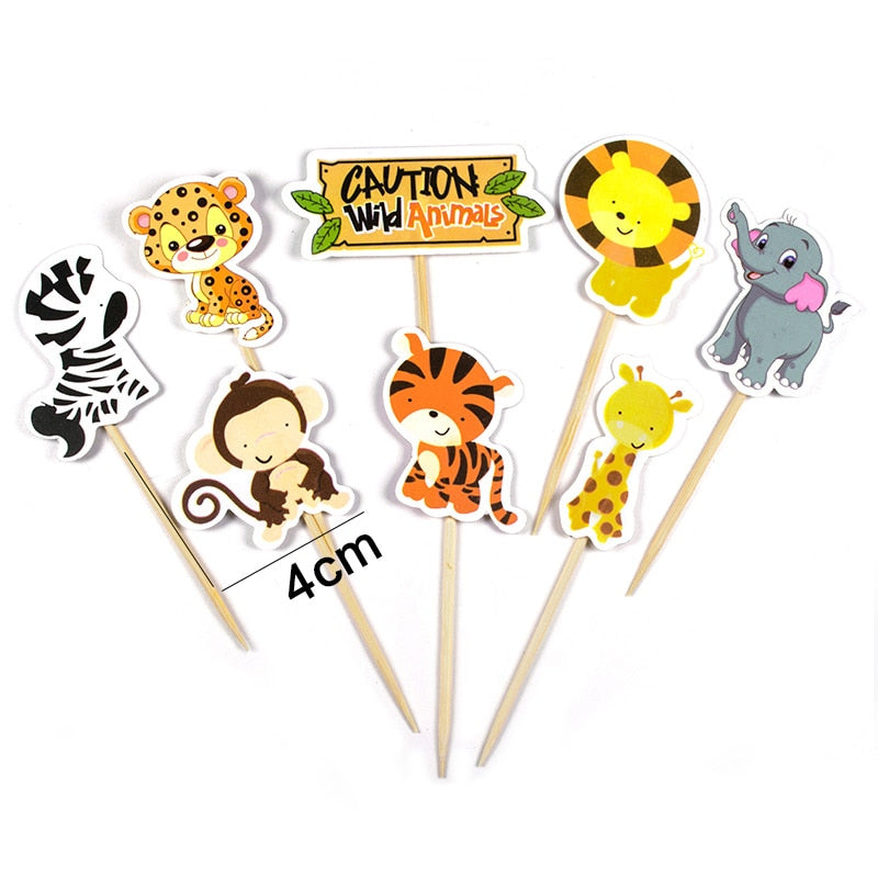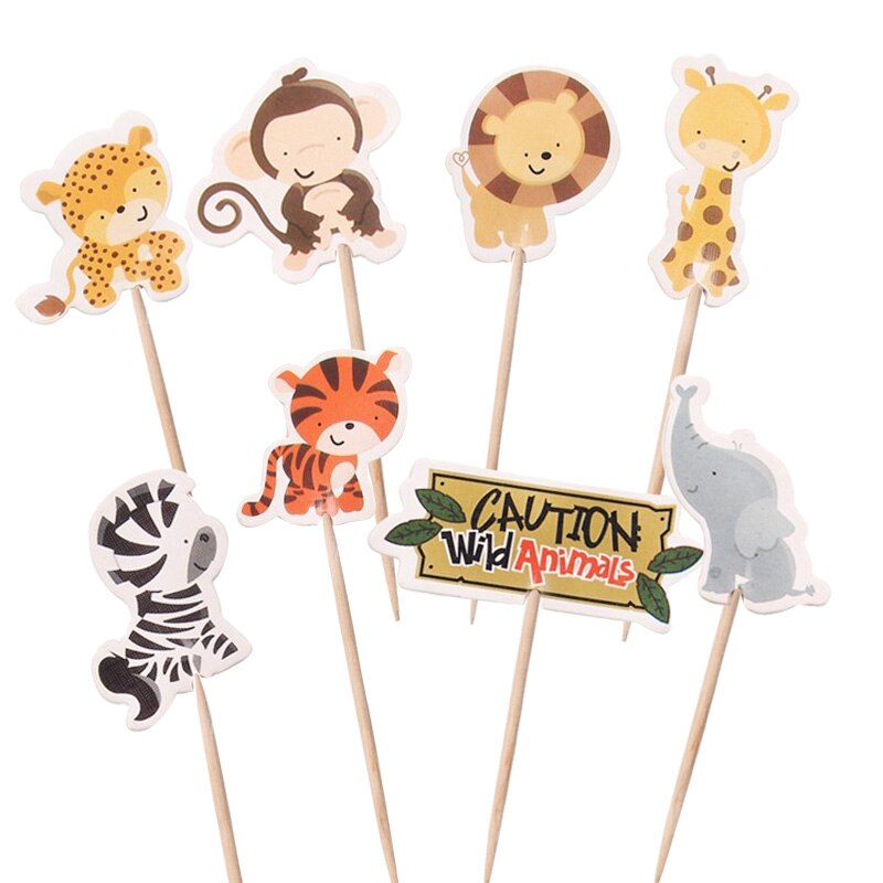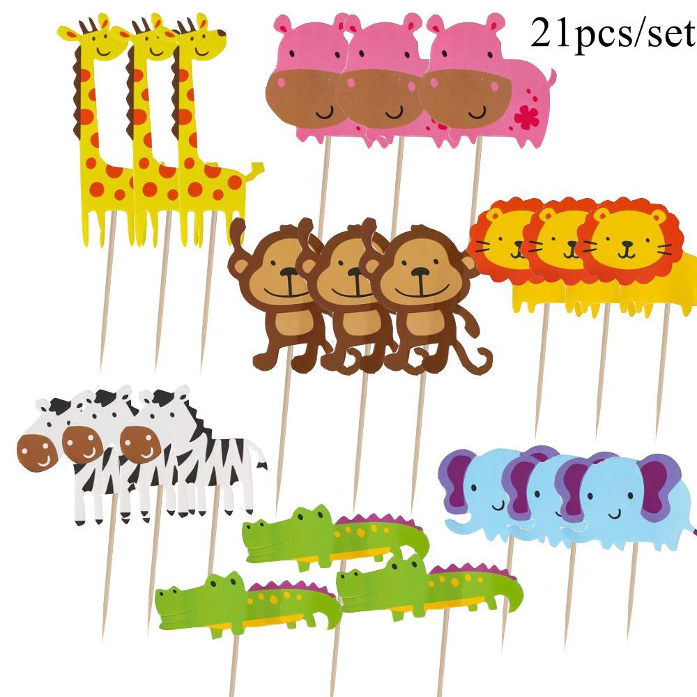 21/24PCS Safari Jungle Animal Cupcake Toppers Picks Happy Birthday Party Decoration Kids Baby Shower Favors Cake Decoration
