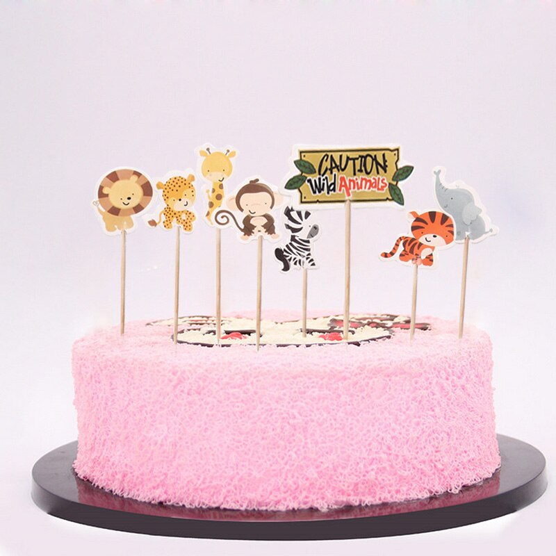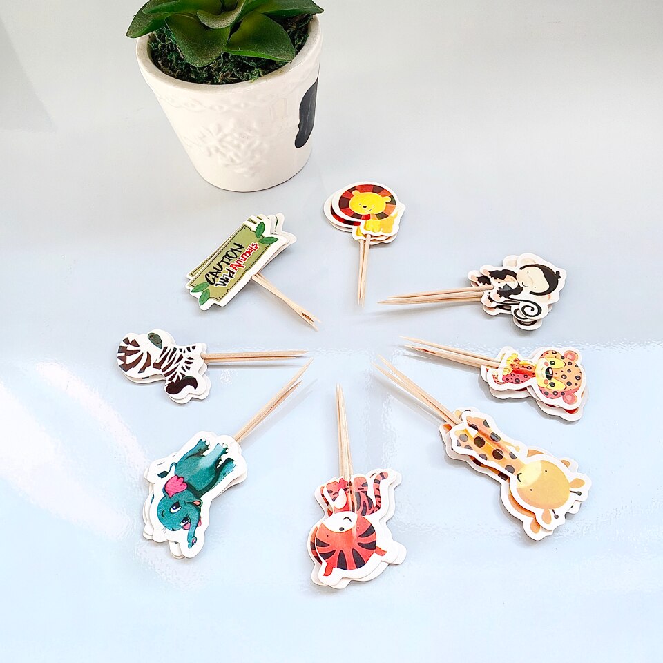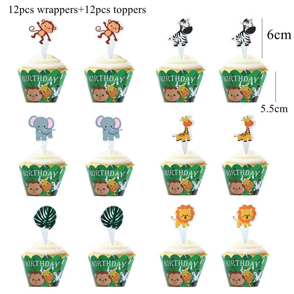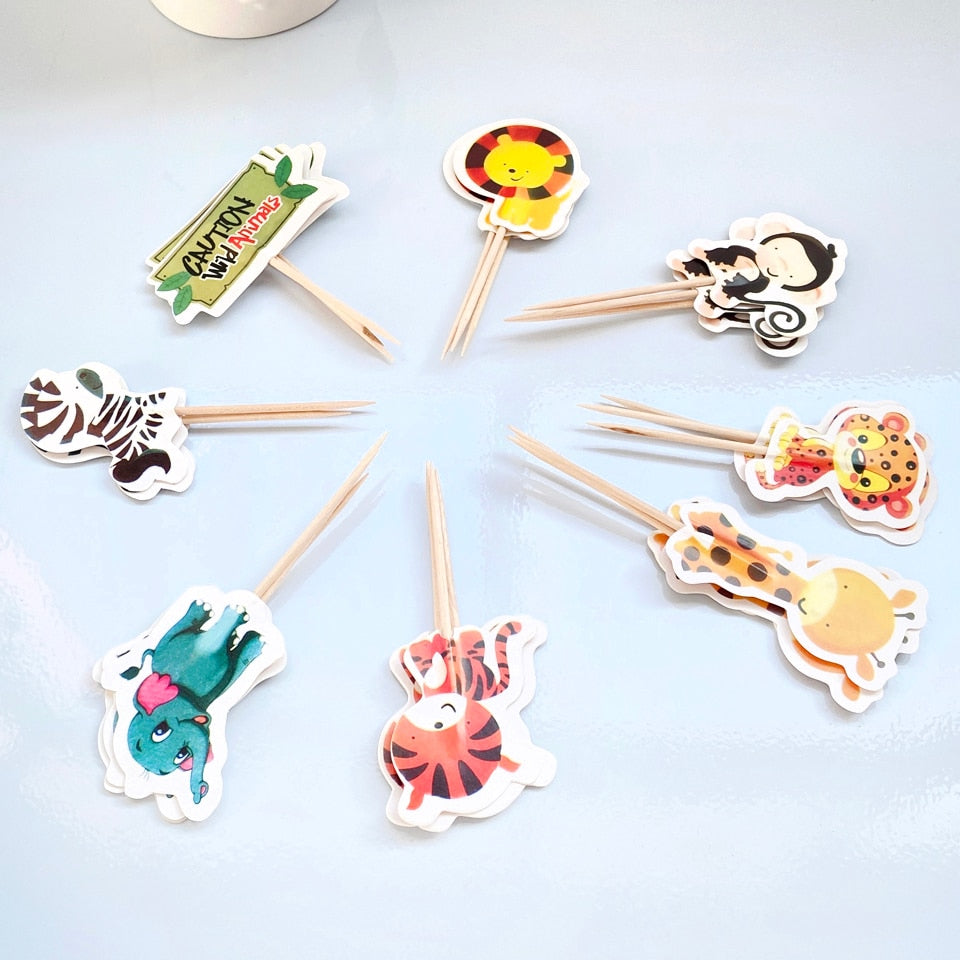21/24PCS Safari Jungle Animal Cupcake Toppers Picks Happy Birthday Party Decoration Kids Baby Shower Favors Cake Decoration