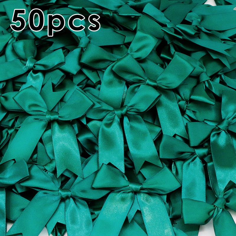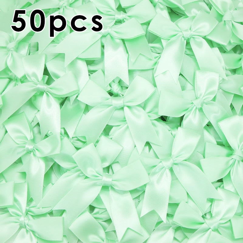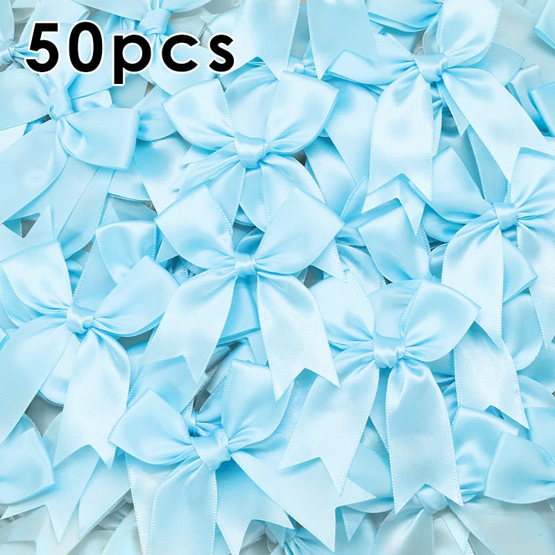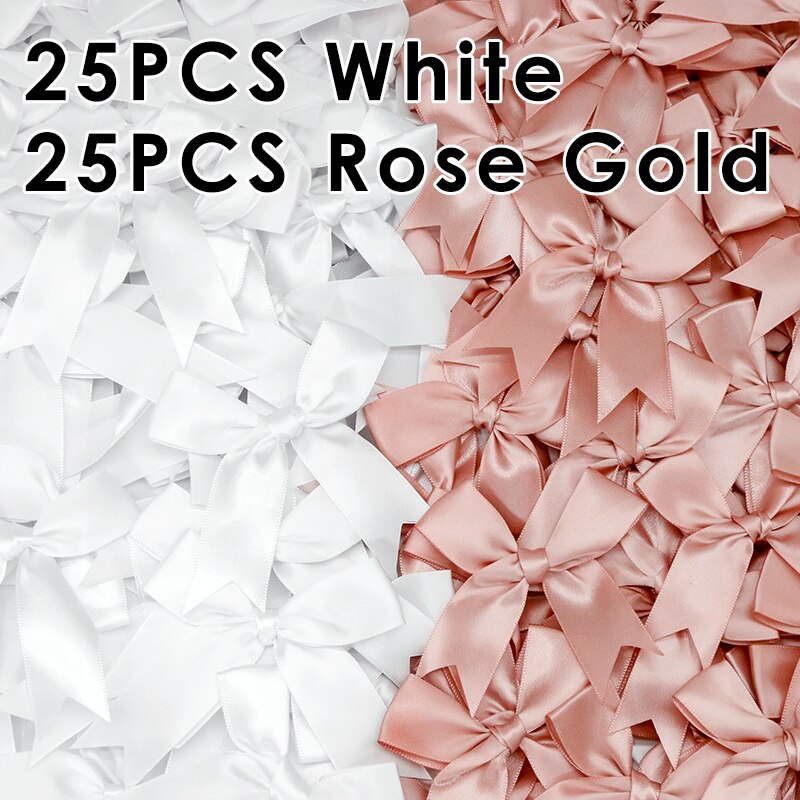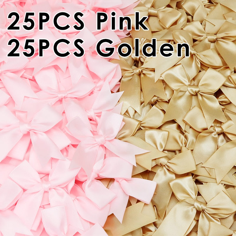 50Pcs 85x85mm Satin Ribbon Bows Knot Craft Bows Pink White Small Flower Gift Tie Wedding Decoration Bow Bowknot DIY Birth Party