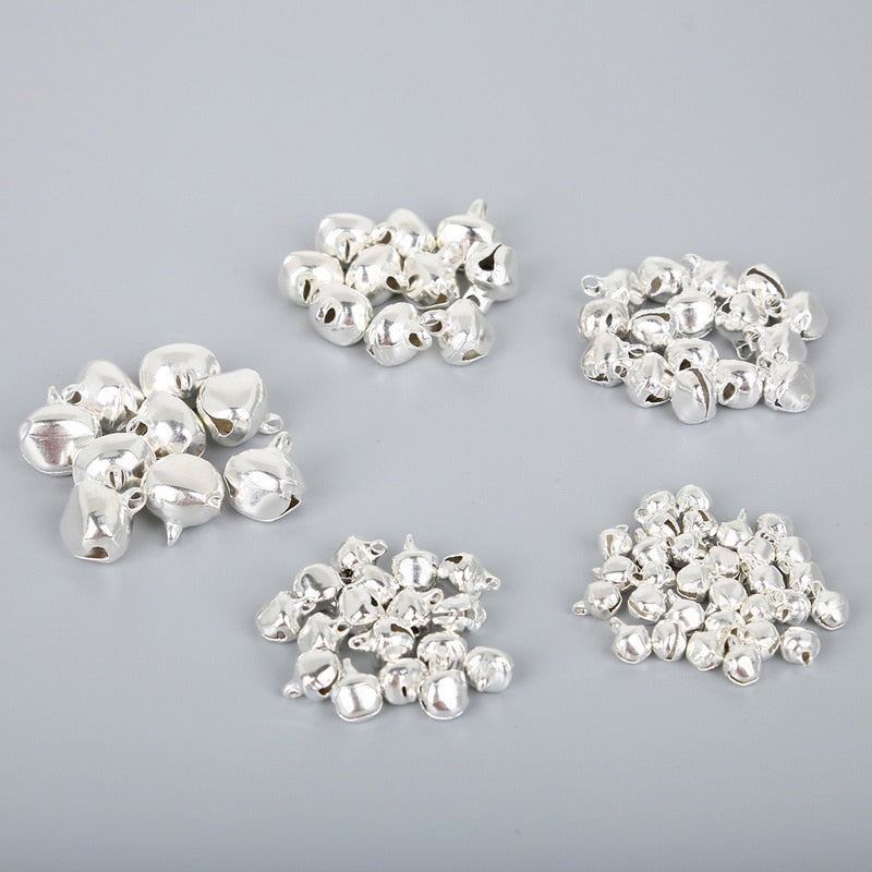 50-300Pcs (6mm/8mm/10mm/12mm/14mm) Silver Jingle Bells Iron Pendants Hanging Christmas Tree Ornaments Christmas Decorations