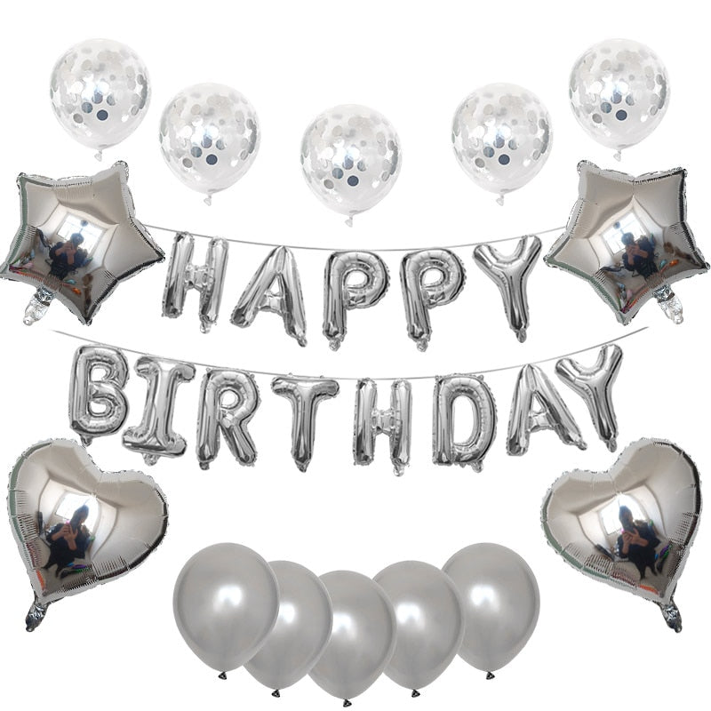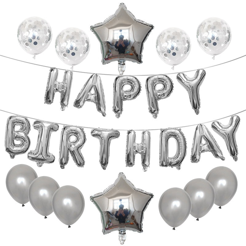 Silver Letters Ballons Happy Birthday Foil Air Balloons
