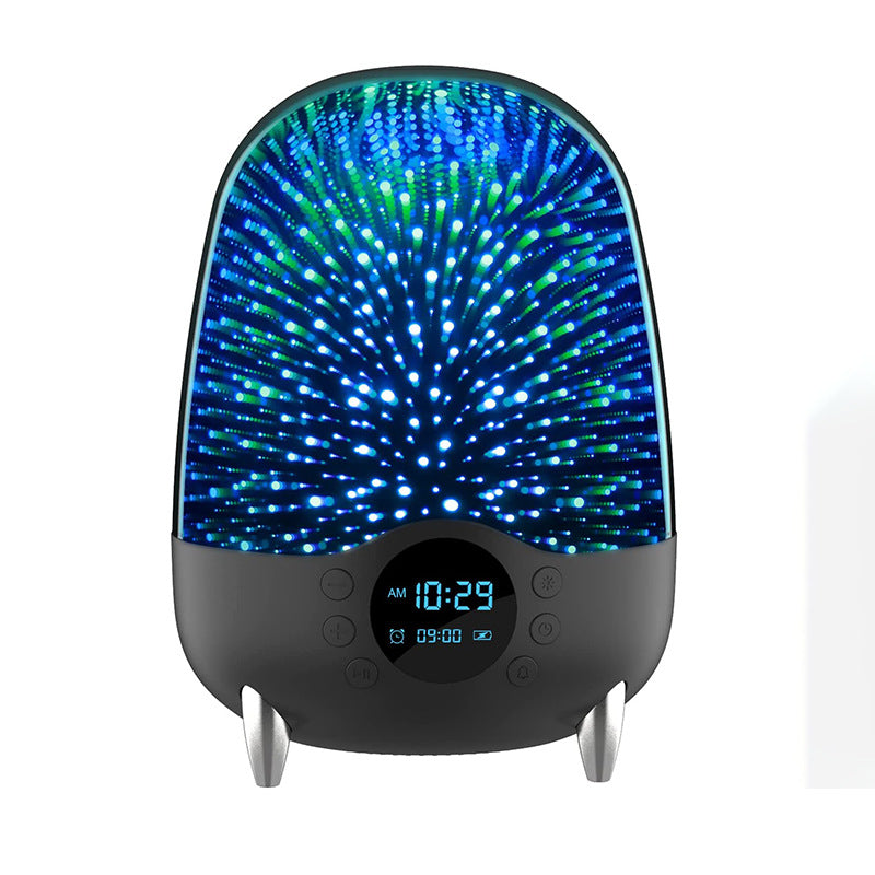 - Product features: Bluetooth 5.0, microphone call intercom, TF, FM, AUX, music playback, clock alarm display, 3D colorful lighting effects