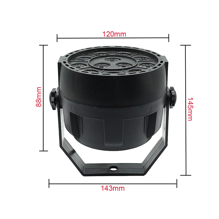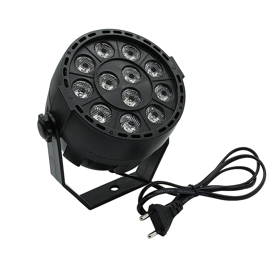 Featuring a powerful LED light source with a light source power of 12W, our Stage Lights deliver a stunning display of vibrant colors. The LED light source consists of 12 individual bulbs, with 3 in red, green, blue, and white each, ensuring a bright and dynamic lighting experience.