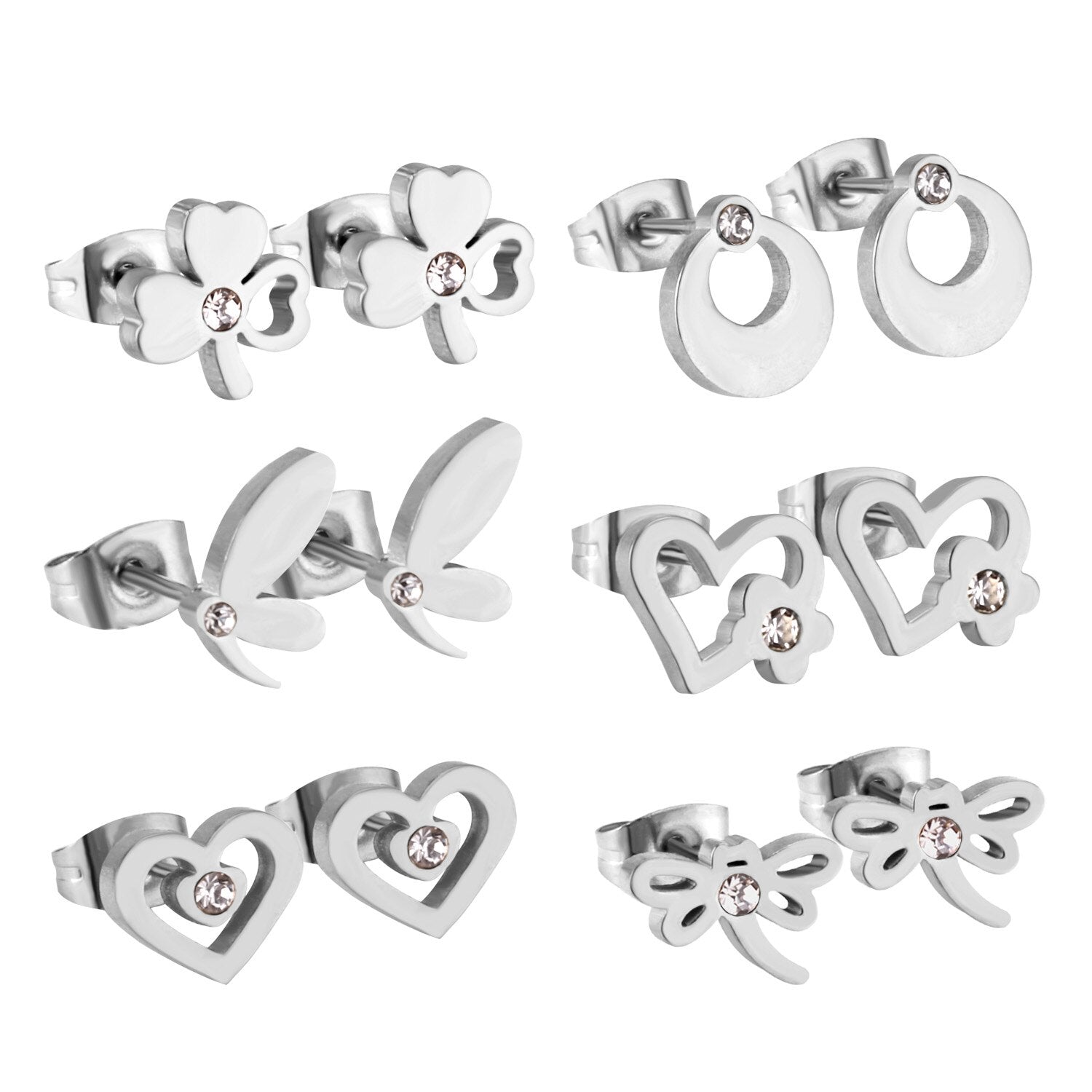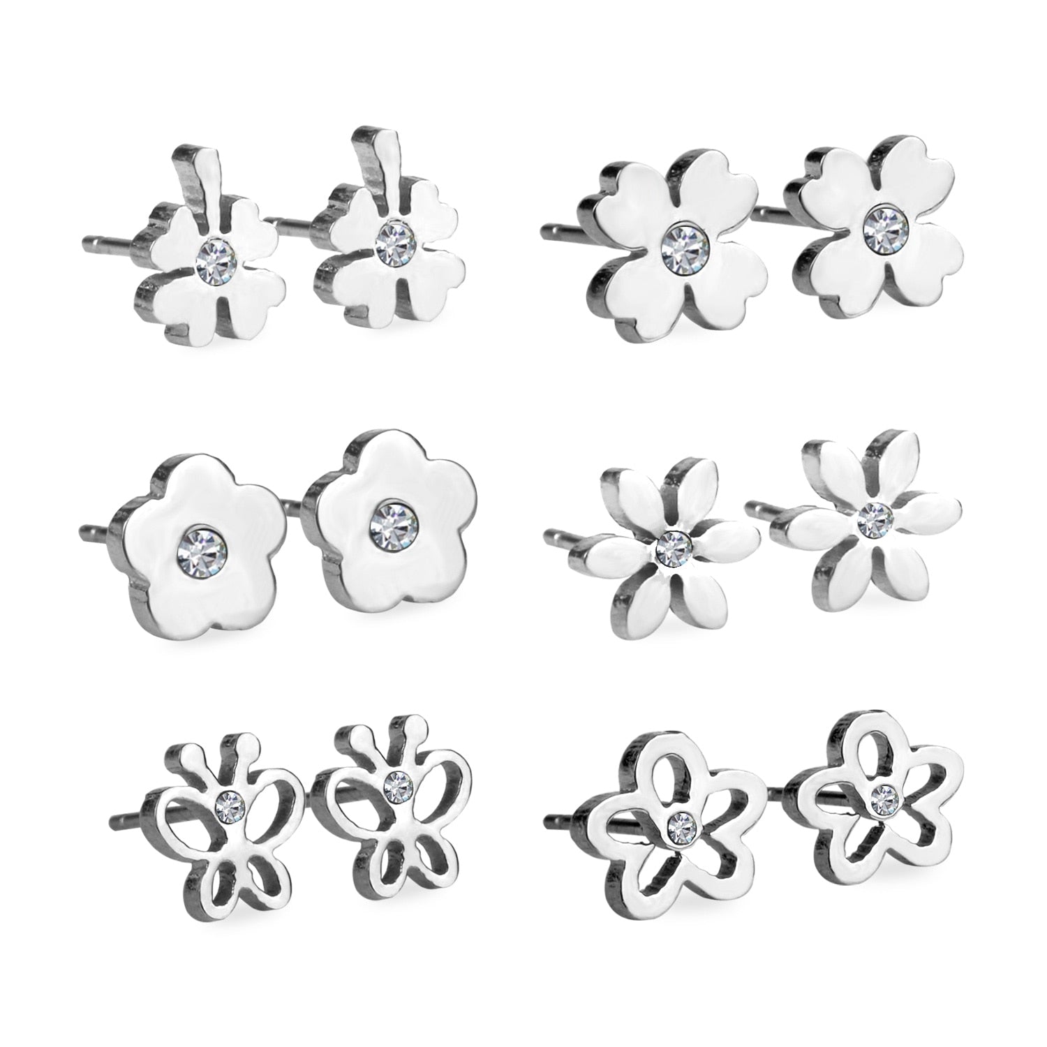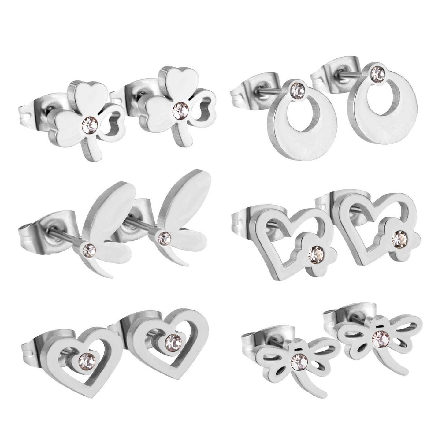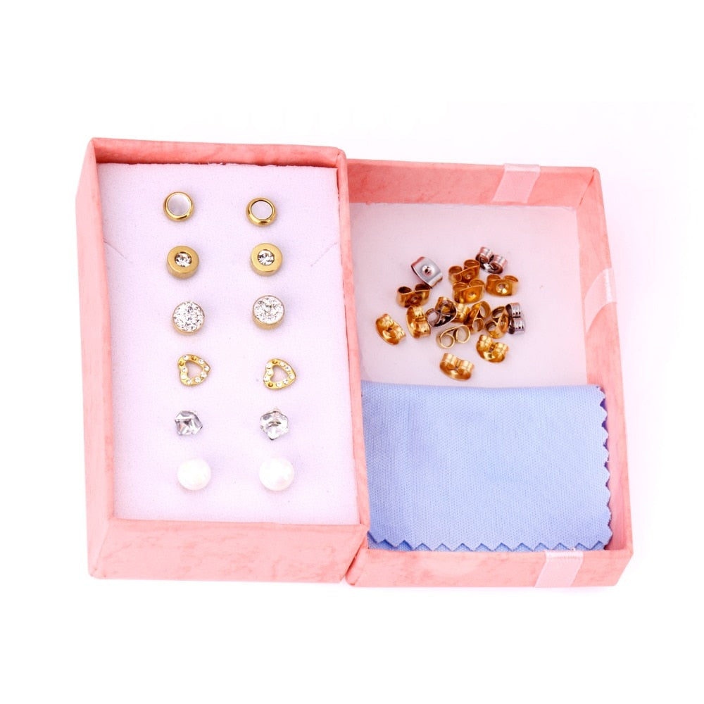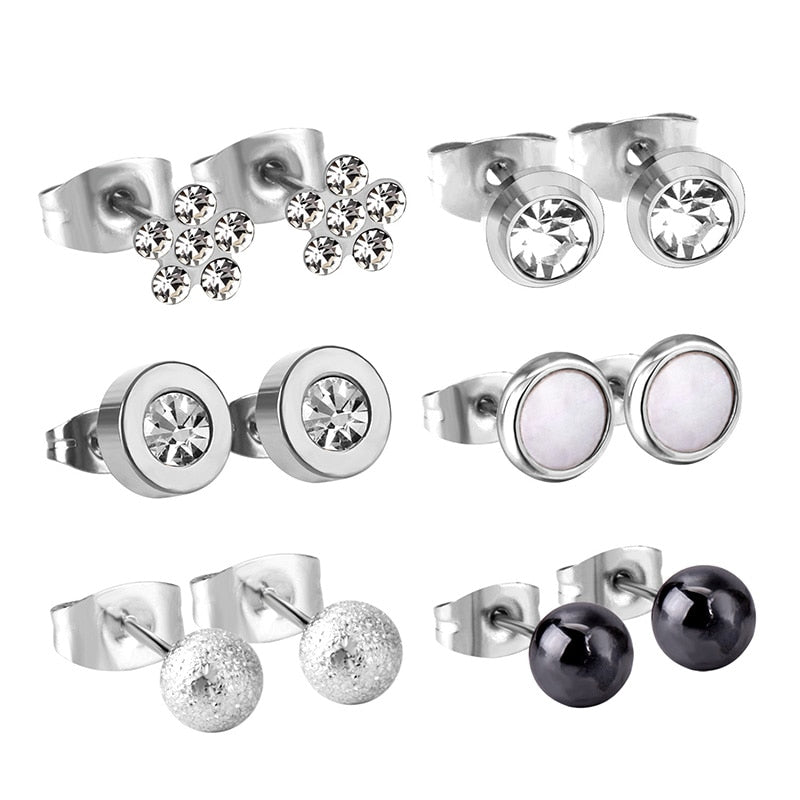 6pairs/lot Stainless Surgical Steel Stud Earrings Sets Pack Christmas Zircon Earrings Set For Women Fashion Jewelry
