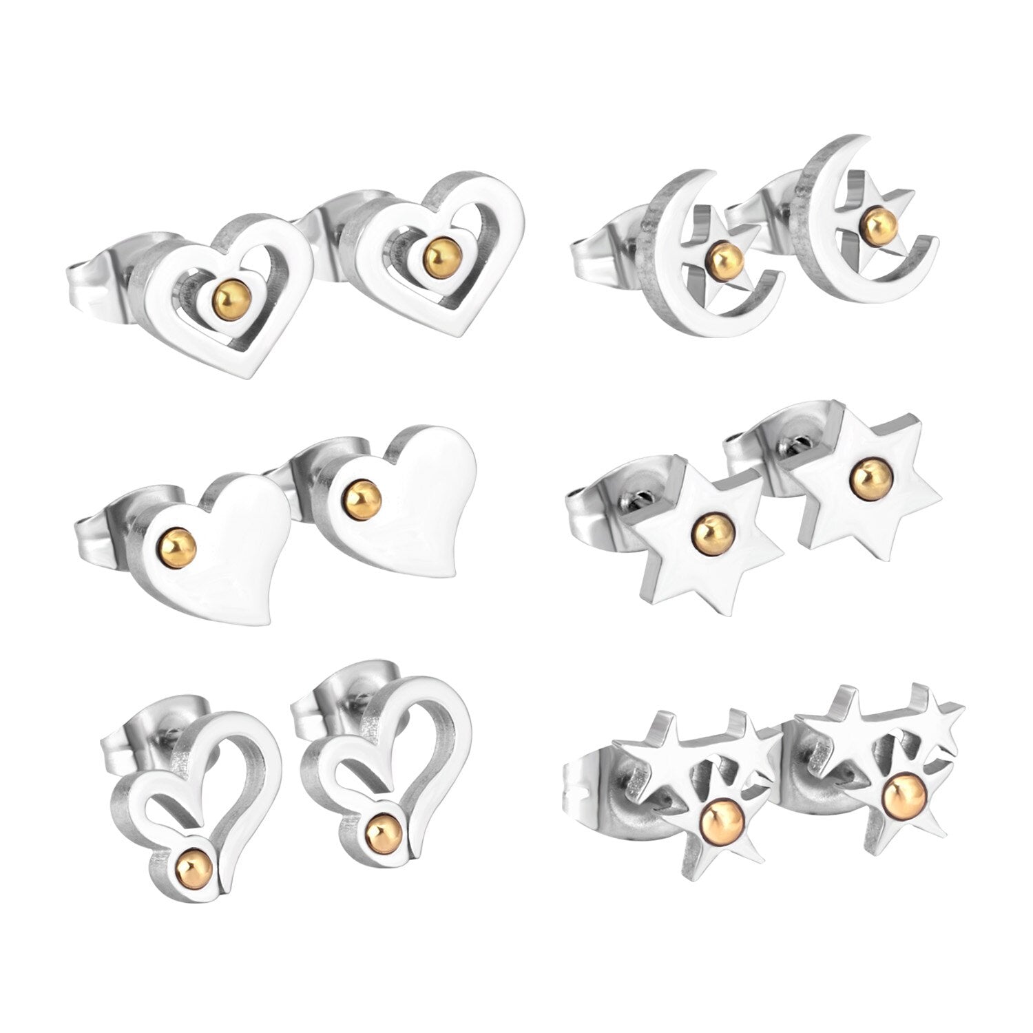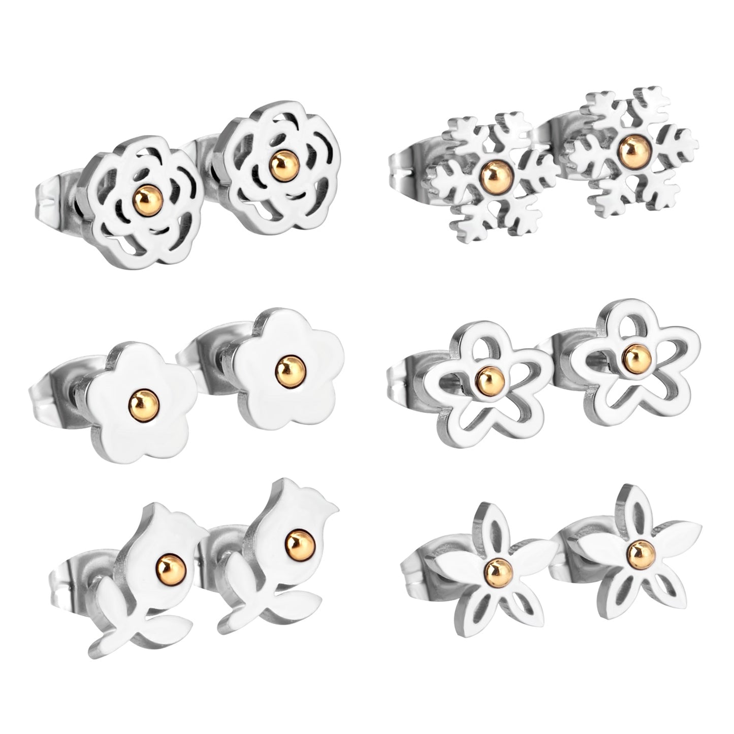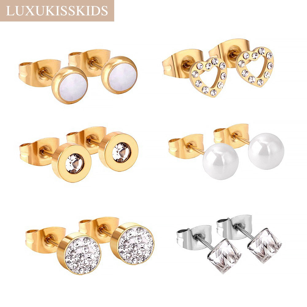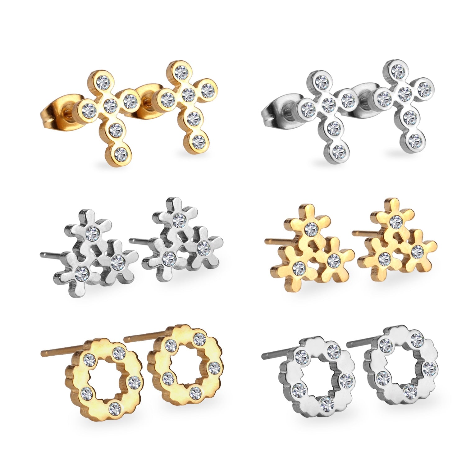 6pairs/lot Stainless Surgical Steel Stud Earrings Sets Pack Christmas Zircon Earrings Set For Women Fashion Jewelry