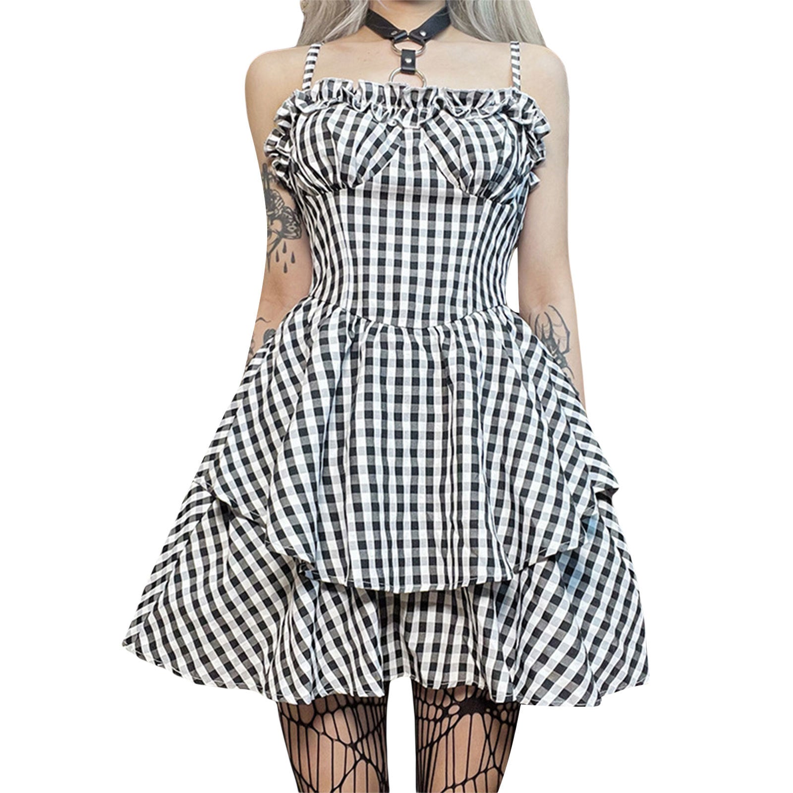 Summer Women's Clothing New Waist-tight Halloween Dark Plaid Sling Lace Puff Dress