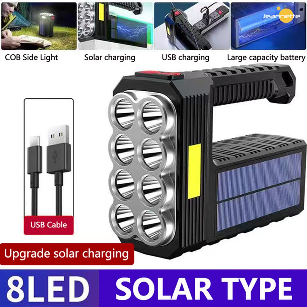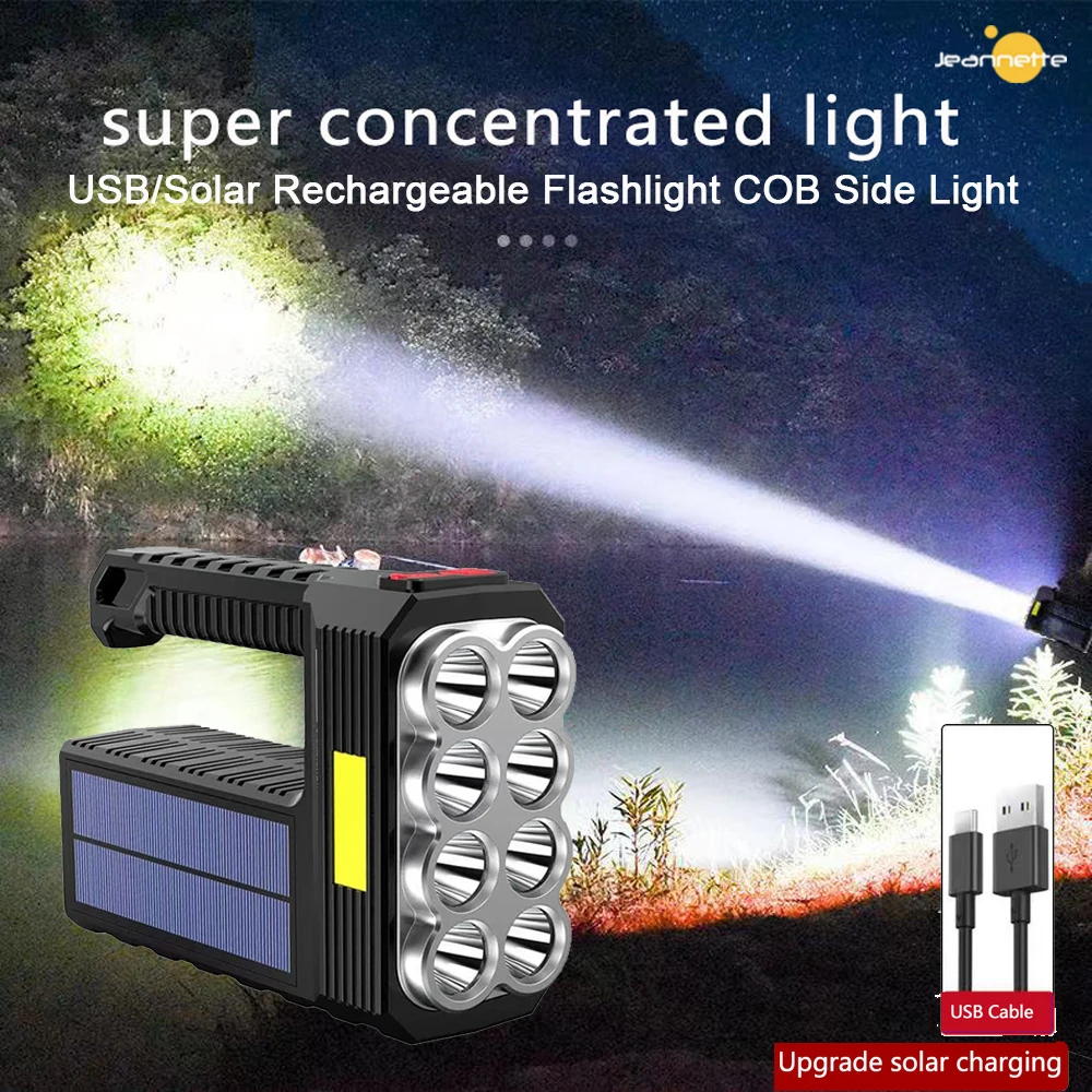 Super Bright Solar LED Camping Flashlight Work Lights USB Rechargeable Handheld Solar Powered Lanterns Spotlight Searchlight