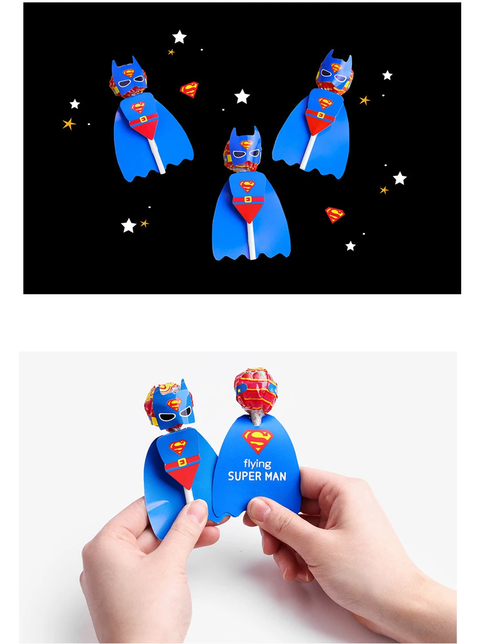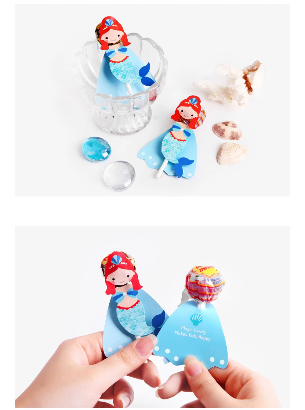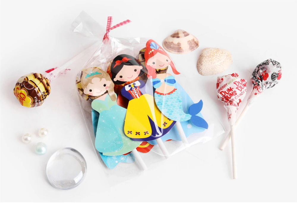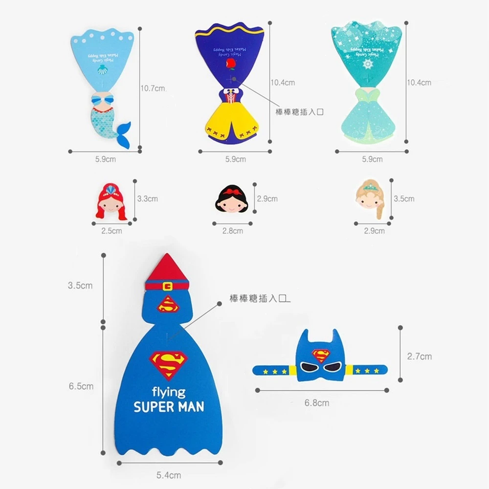 Superhero Princess Mermaid Themed Birthday Favors Baby Shower Cake Candy Lollipop Decoration Cards for Kids Boy Girls Party Gift