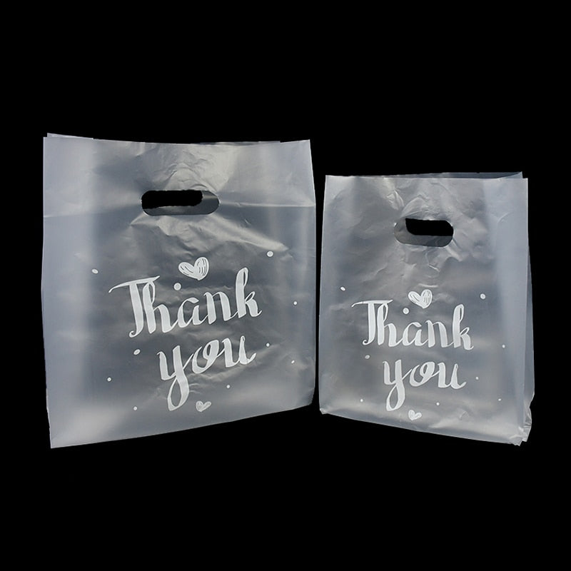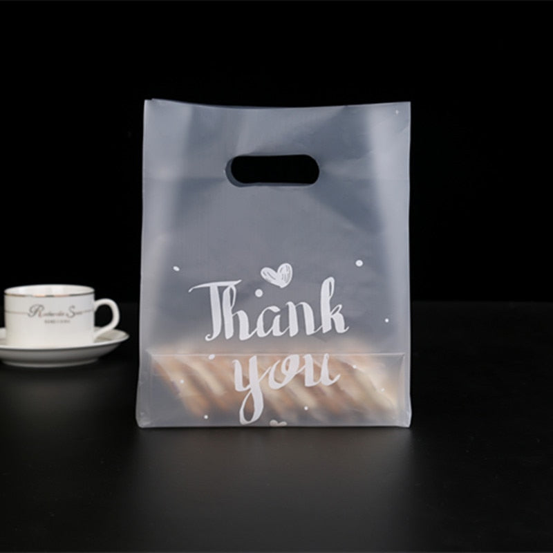 50pcs Thank You Plastic Bags Christmas Gift Packaging Bag With Hand Shopping Bag Wedding Party Favor Candy Cookie Wrapping Bags