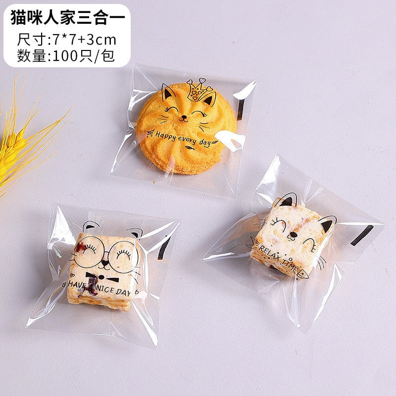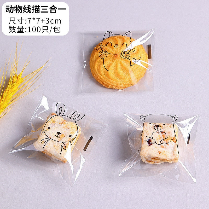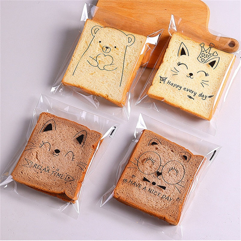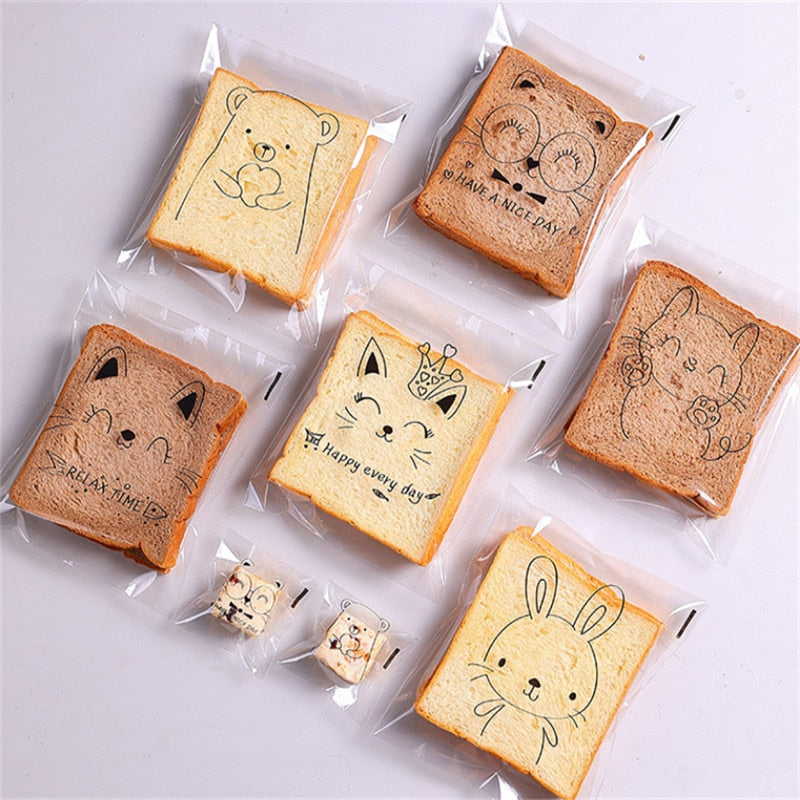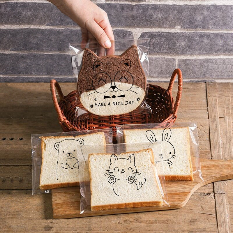 100Pcs Transparent Self-adhesive Cute Cartoon Animal Bread Paste Pineapple Buns Baked Sliced Toast Packaging Bags