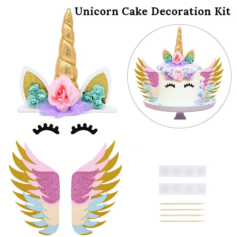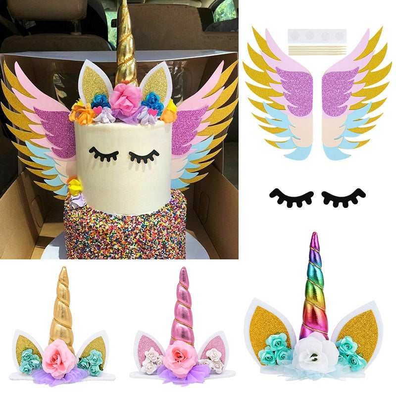 Unicorn Cake Topper Rainbow Horn Kids Girl Birthday Party Cake Decoration Tools Baby Shower Wedding Unicorn Theme Party Supplies