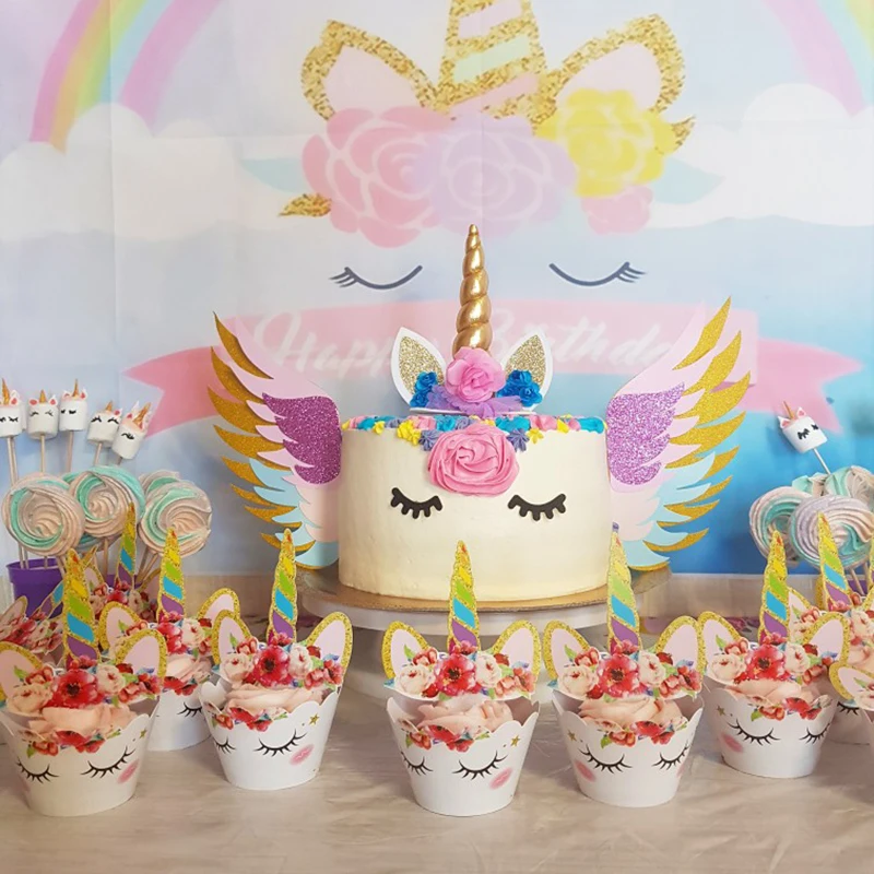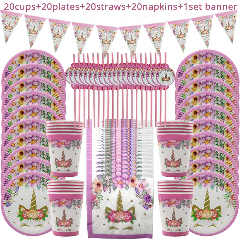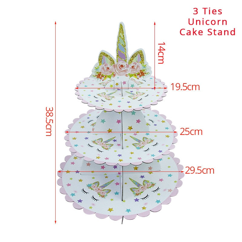 Unicorn Party 3-tier Cup Cake Stand Paper Plates Cups Balloon Birthday Party Decoration Kids Unicornio Party Girls Baby Shower