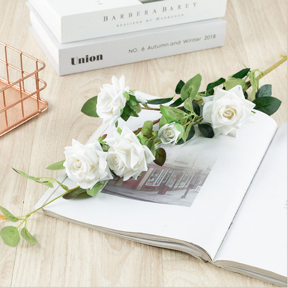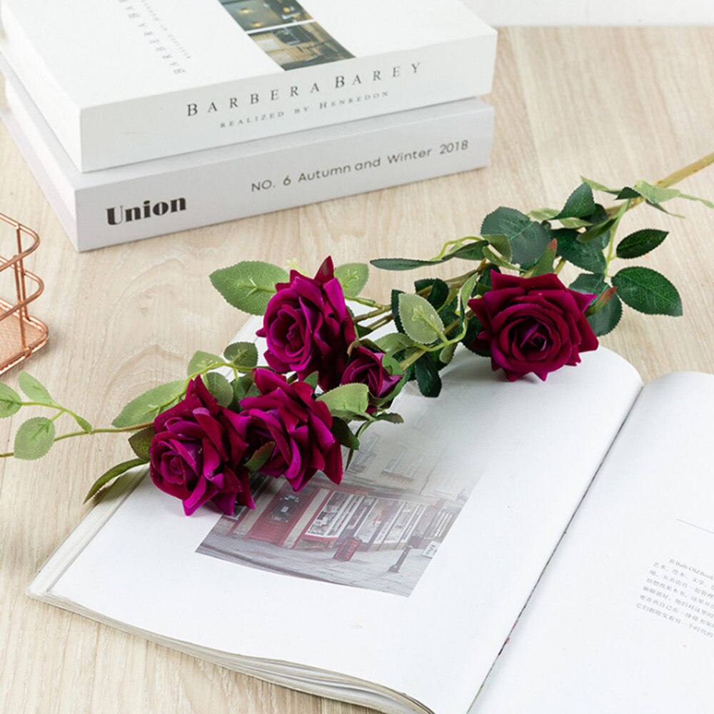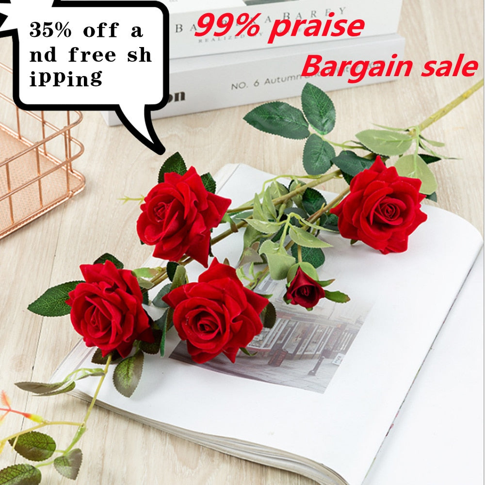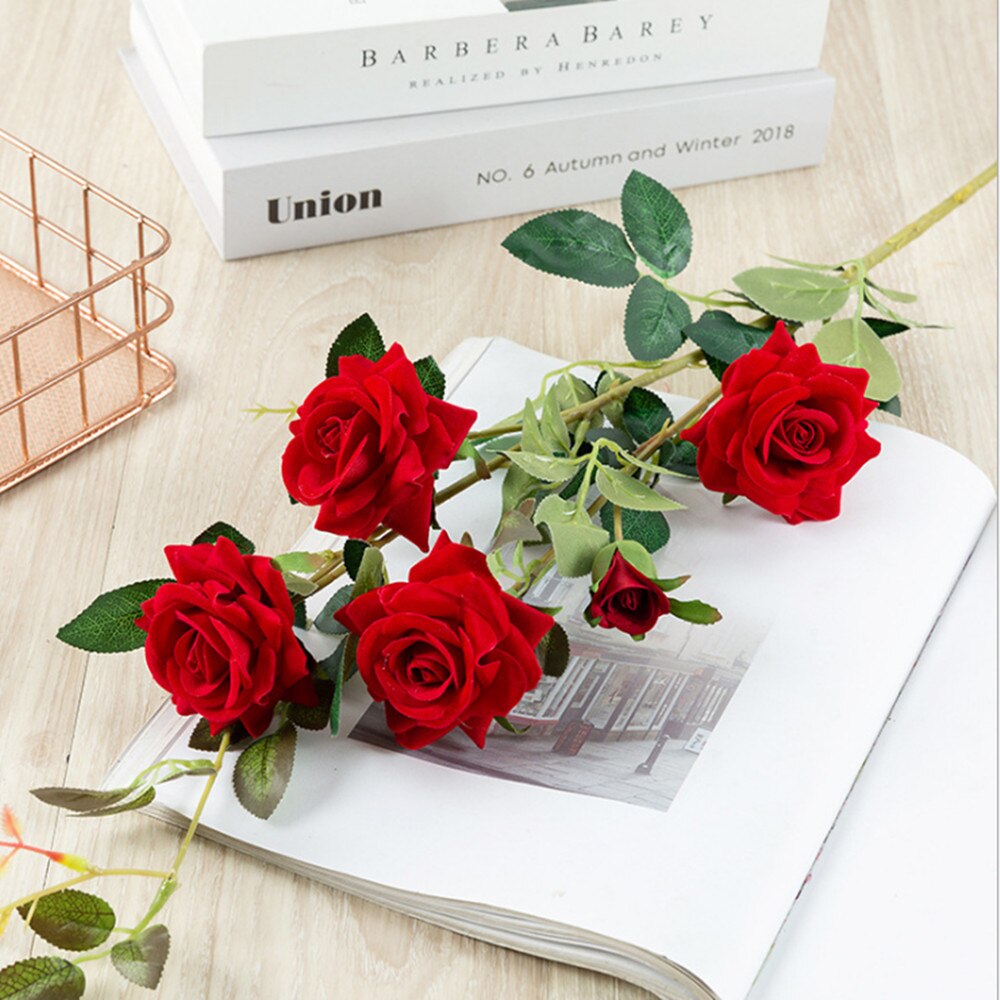 82cm 4 Flowers 1 Bud Artificial Velvet Corner Rose Flower Wedding DIY Home Hotel Restaurant Bar Decoration Valentine's Day Gift
