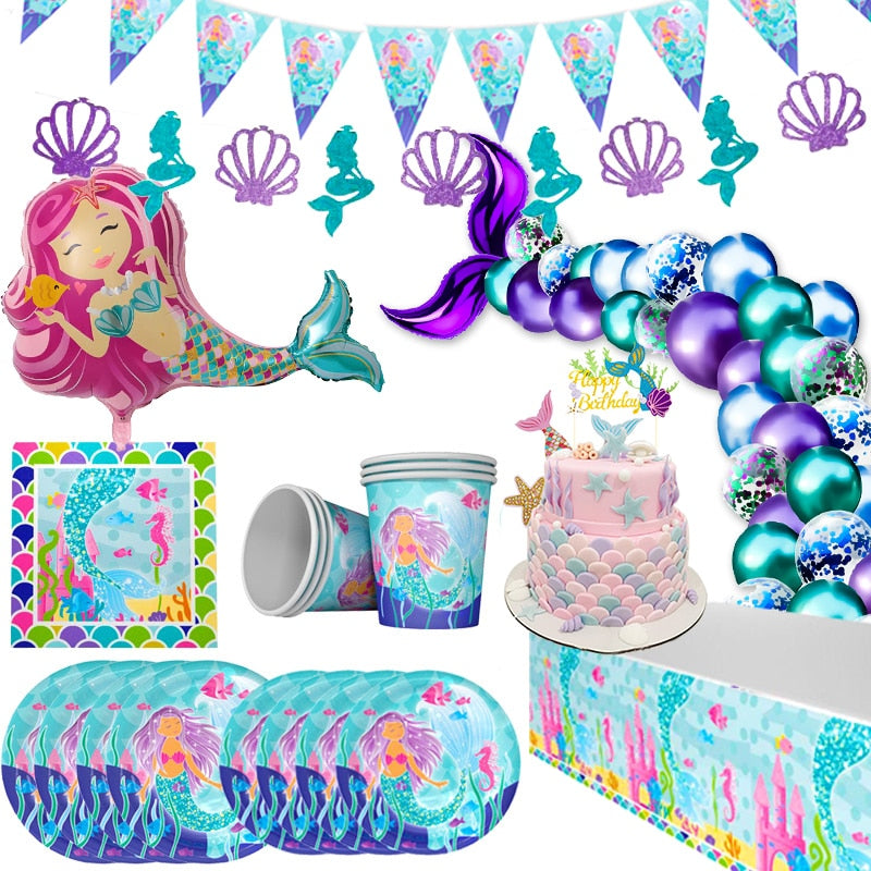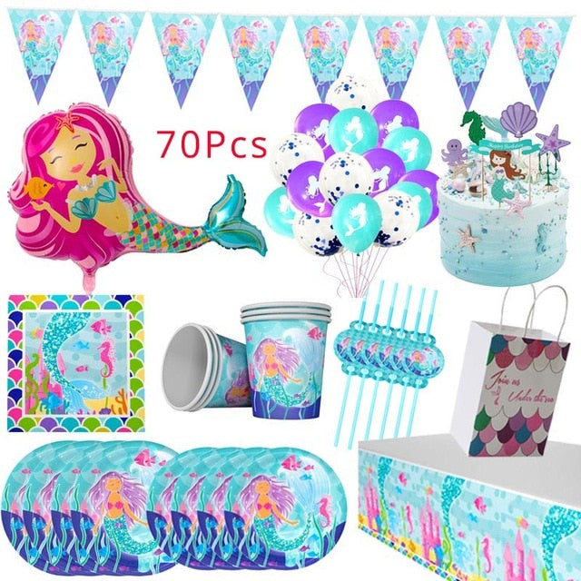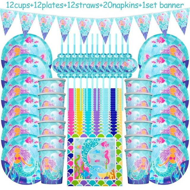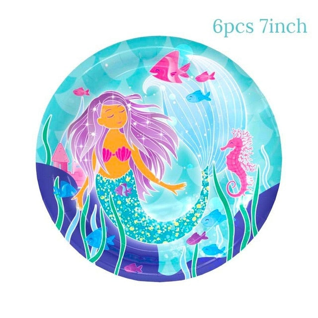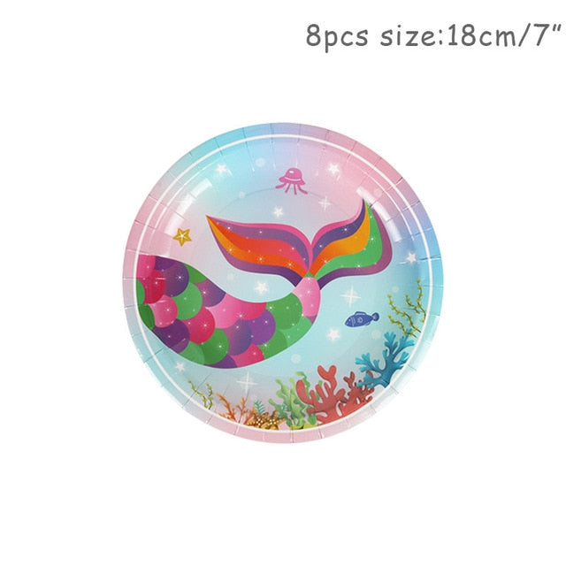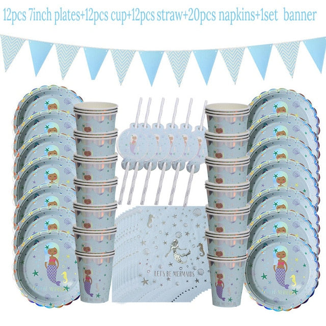 WEIGAO Little Mermaid Party Decor Mermaid Birthday Party Disposable Tableware Kit Under the Sea Girl First Birthday Party Supply